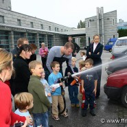 "Fire-fighter" Richard Berger führte das interessierte Publikum durch das Feuerwehrhaus am Schulweg und erfüllte mit einer Fahrt mit dem "fire-truck" so manchen Kindertraum.