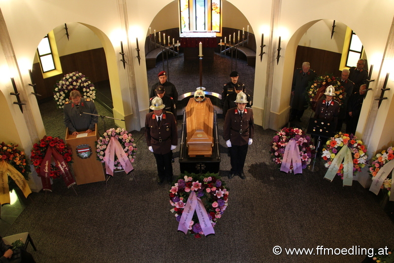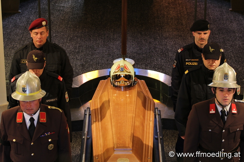 Eine Ehrenkompanie aus Beamten der Bundespolizei, der Einsatzgruppe Cobra, der Diensthundestaffel und der Feuerwehrmänner des Bezirkes nahm vor der Aufbahrungshalle Aufstellung um Abschied zu nehmen.