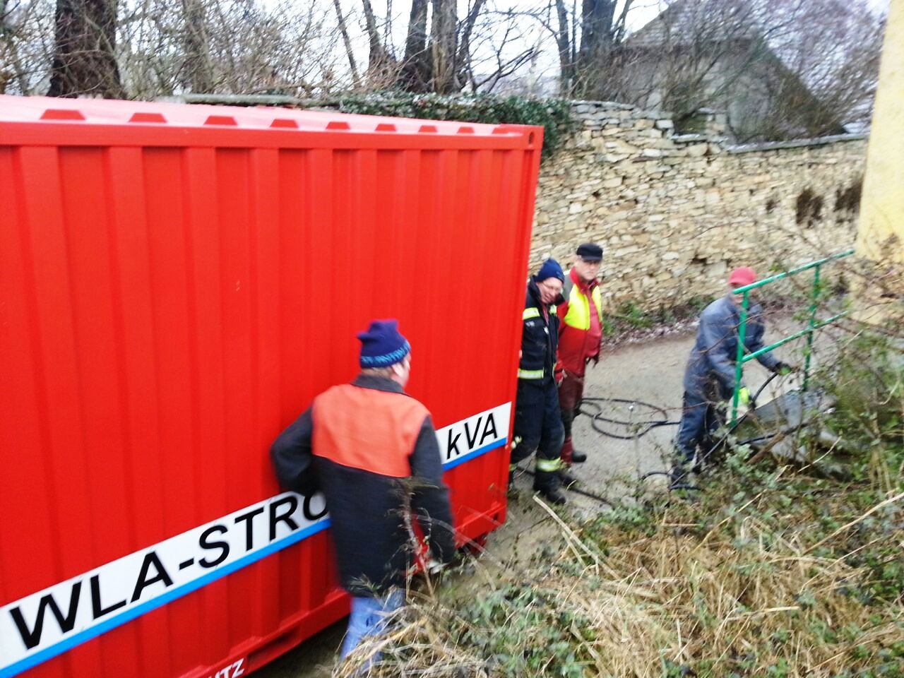 .... ist für eine kleine Waldviertler Gemeinde heute garantiert. Seit knapp einer Stunde speist unser 200 kVA Generator, der in Stockern (Gemeinde Klein Meiseldorf) seinen Aufstellungsplatz gefunden hat, Strom in eine Trafostation der EVN ein, um so zu den Haushalten zu gelangen, die ohne Licht und teilweise ohne elektrische Heizung waren.