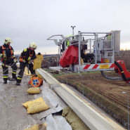 Die Feuerwehr Laxenburg forderte Steig Mödling zur Unterstützung bei einem Sturmschaden an einer Lagerhalle an.