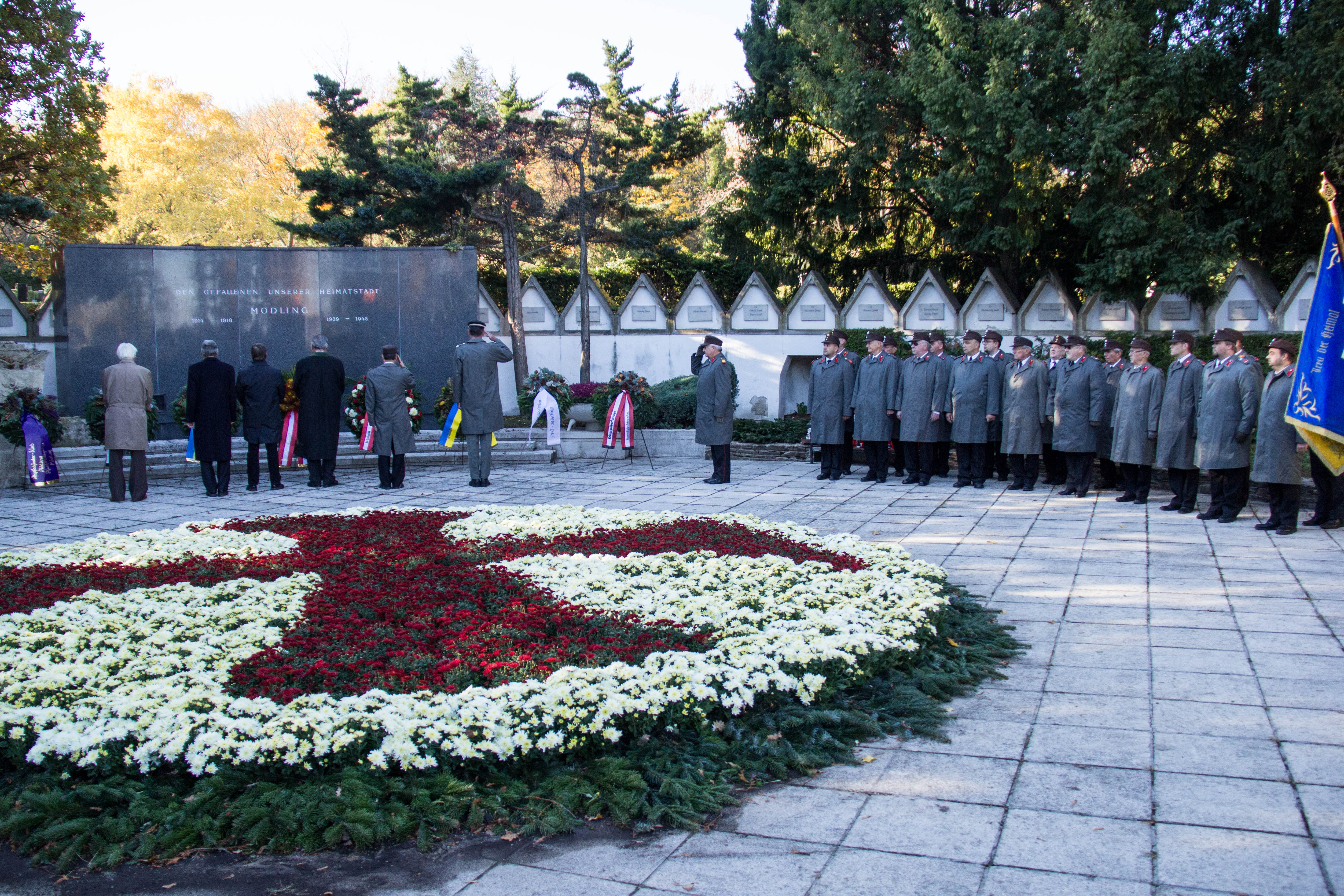 Sogar bei Sonnenschein fand der heutige Friedhofsgang statt. Zu Allerheiligen treffen sich traditionell Vertreter der Stadt, des Roten Kreuzes, der Feuerwehr und des Kameradschaftsbundes am Mödlinger Friedhof. Für die musikalische Begleitung sorgt die Blasmusikkapelle Mödling.