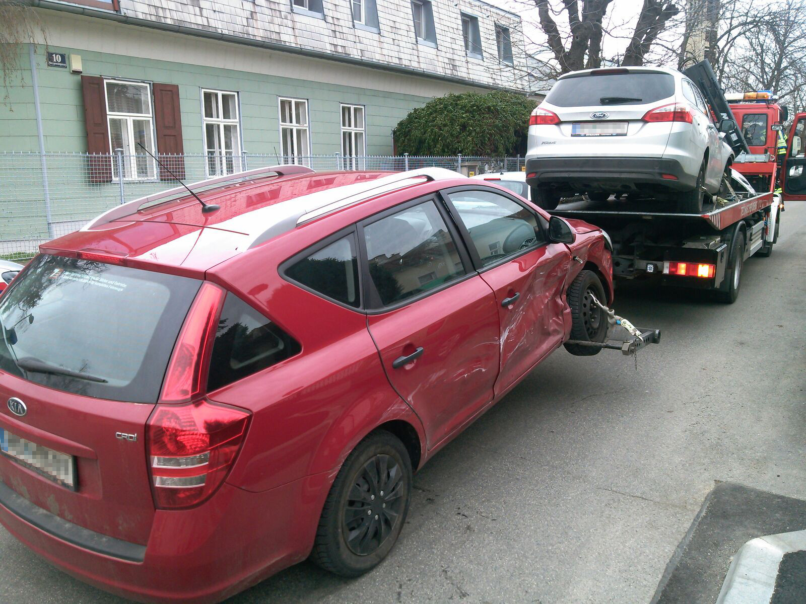 Zwei PKW waren kollidiert und fahruntauglich liegen geblieben. Aufgrund auslaufender Flüssigkeiten musste die Mannschaft der Feuerwehr Mödling beide PKWs bergen. Mittels des Plateaus von Last 1 und der Abschleppbrille wurden die Fahrzeuge auf den gesicherten Abstellplatz verbracht.