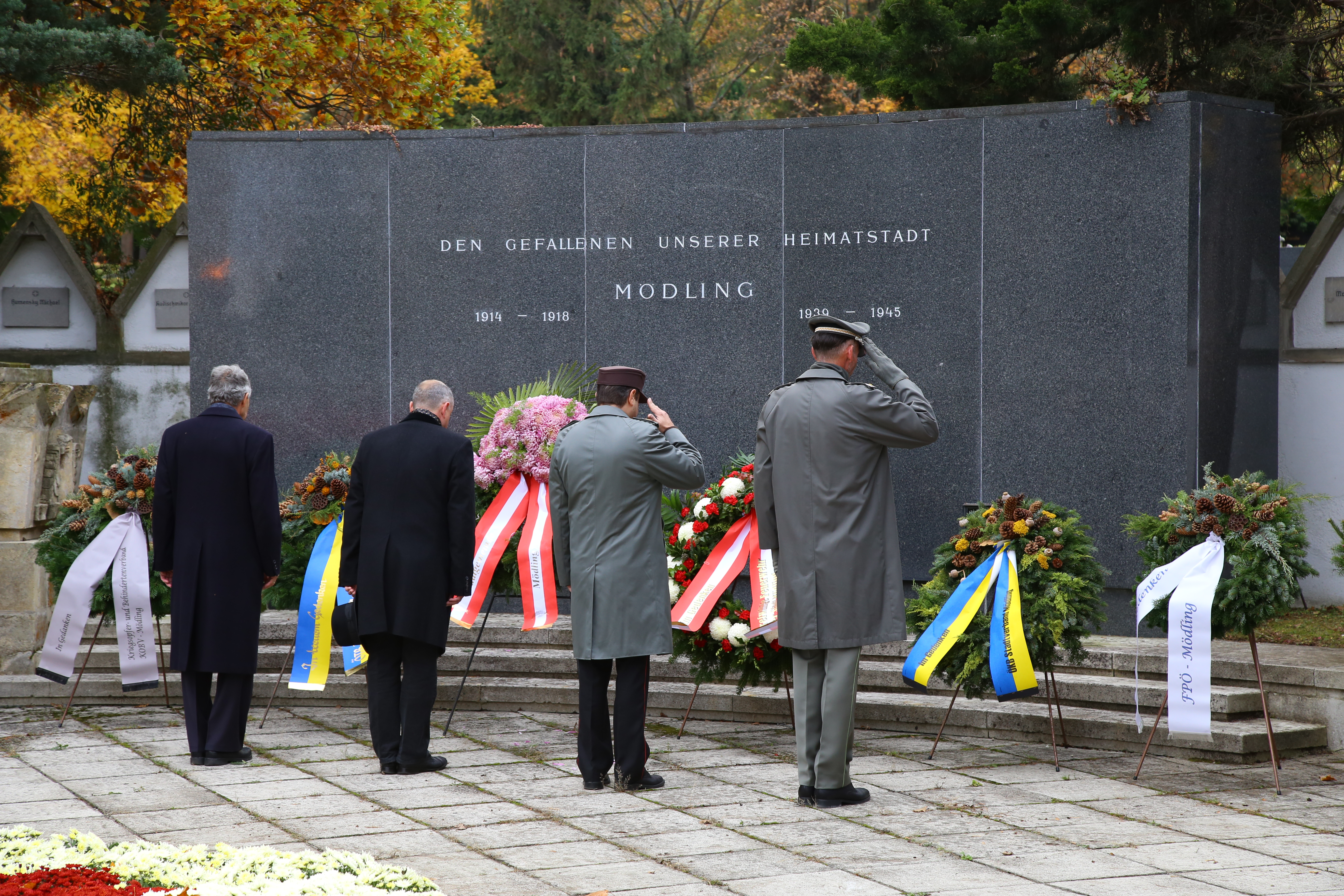 Bgm. LAbg. Hans-Stefan Hintner gedachte der gefallenen Bürger Mödlings und deren Angehöriger, da nicht unweit von uns entfernt heute wieder viele Menschen von Krieg und Gewalt betroffen sind. Weiters bedankte er sich in einer Ansprache herzlich bei den Abordnungen von Feuerwehr, Rotes-Kreuz, Kameradschaftsbund und mehreren Gemeindevertretern für deren Teilnahme.