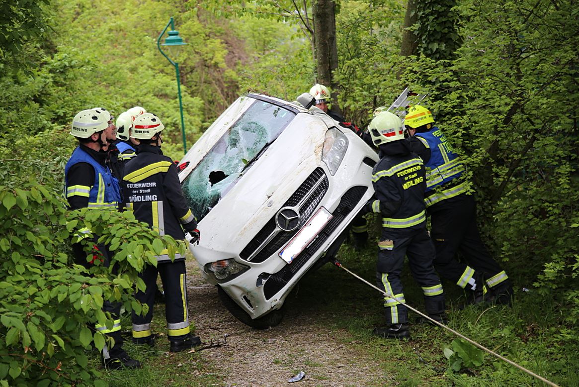 In den Morgenstunden des 16. April musste am Eichkogel ein auf dem Dach liegendes Fahrzeug nach einem Unfall geborgen werden.