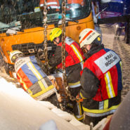 Ein Fahrzeug des Winterdienstes ist von der Fahrbahn abgekommen und konnte mit den Seilwinden der Feuerwehr Sparbach nicht geborgen werden.