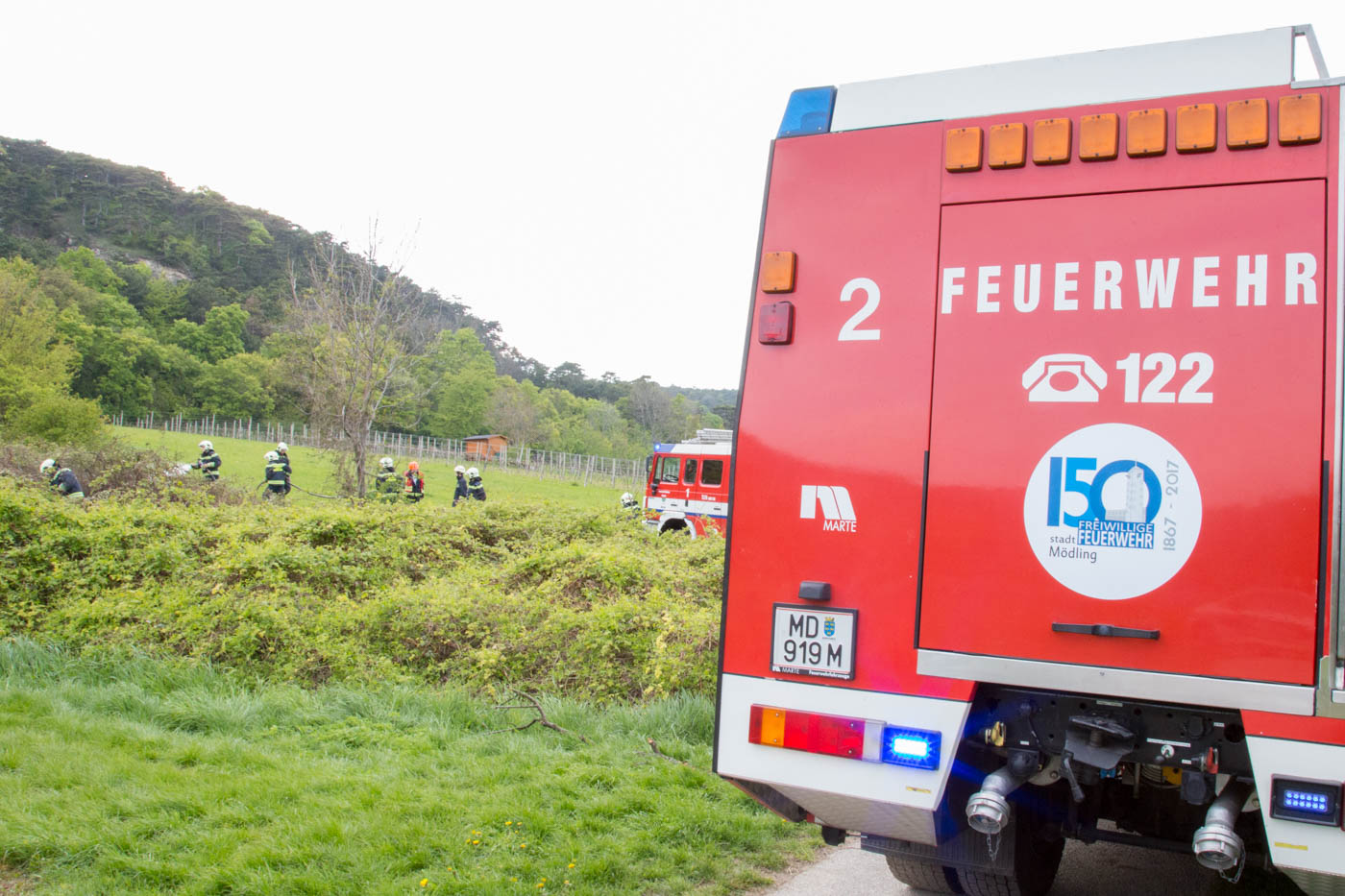 Aus bisher ungeklärten Umständen entfachte sich am Wiener Hochquellwasserleitungsweg, oberhalb der Dr. Ludwig Rieger Straße, gegen 18:00 Uhr ein Feuer in einem kleinen Windschutzgürtel.