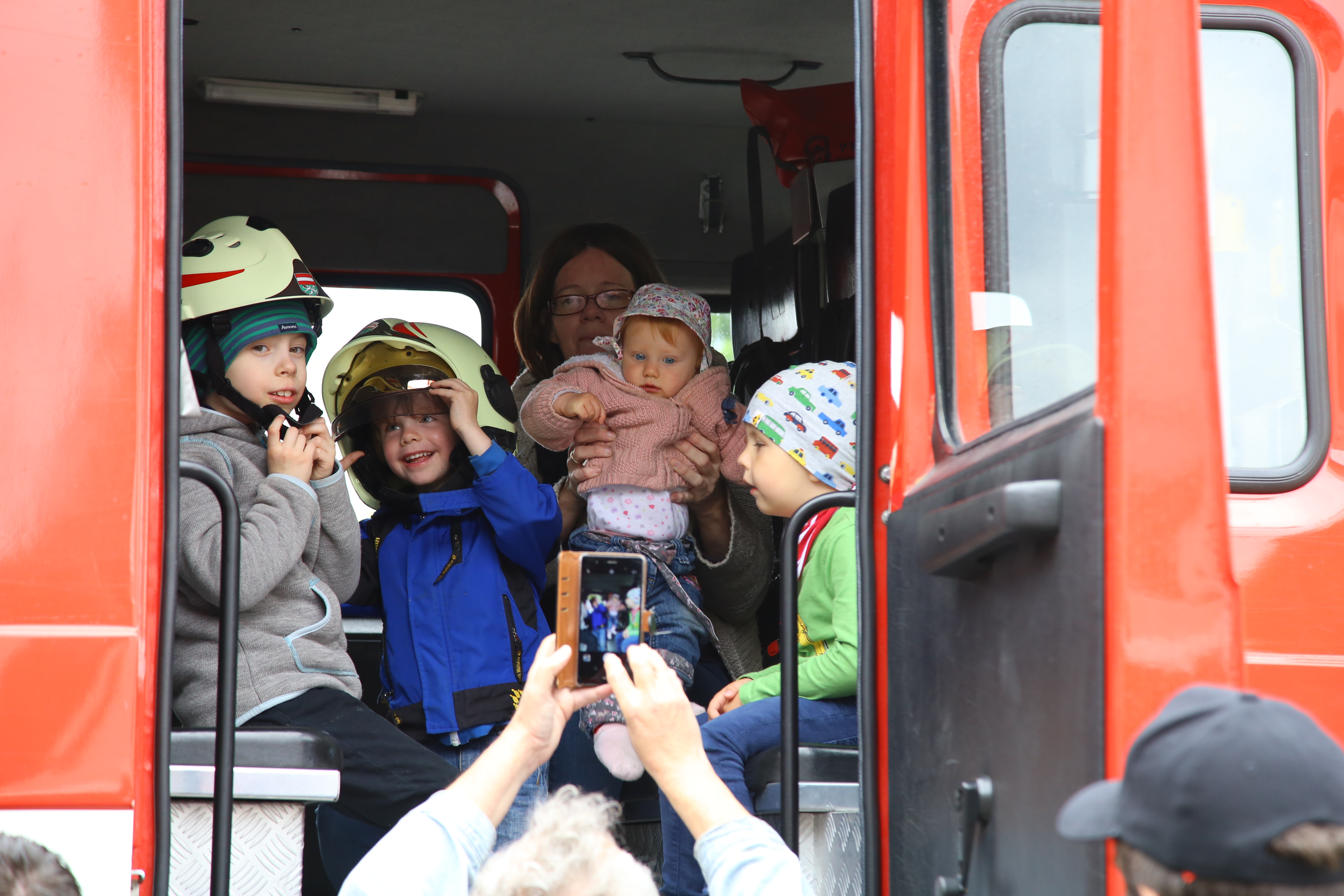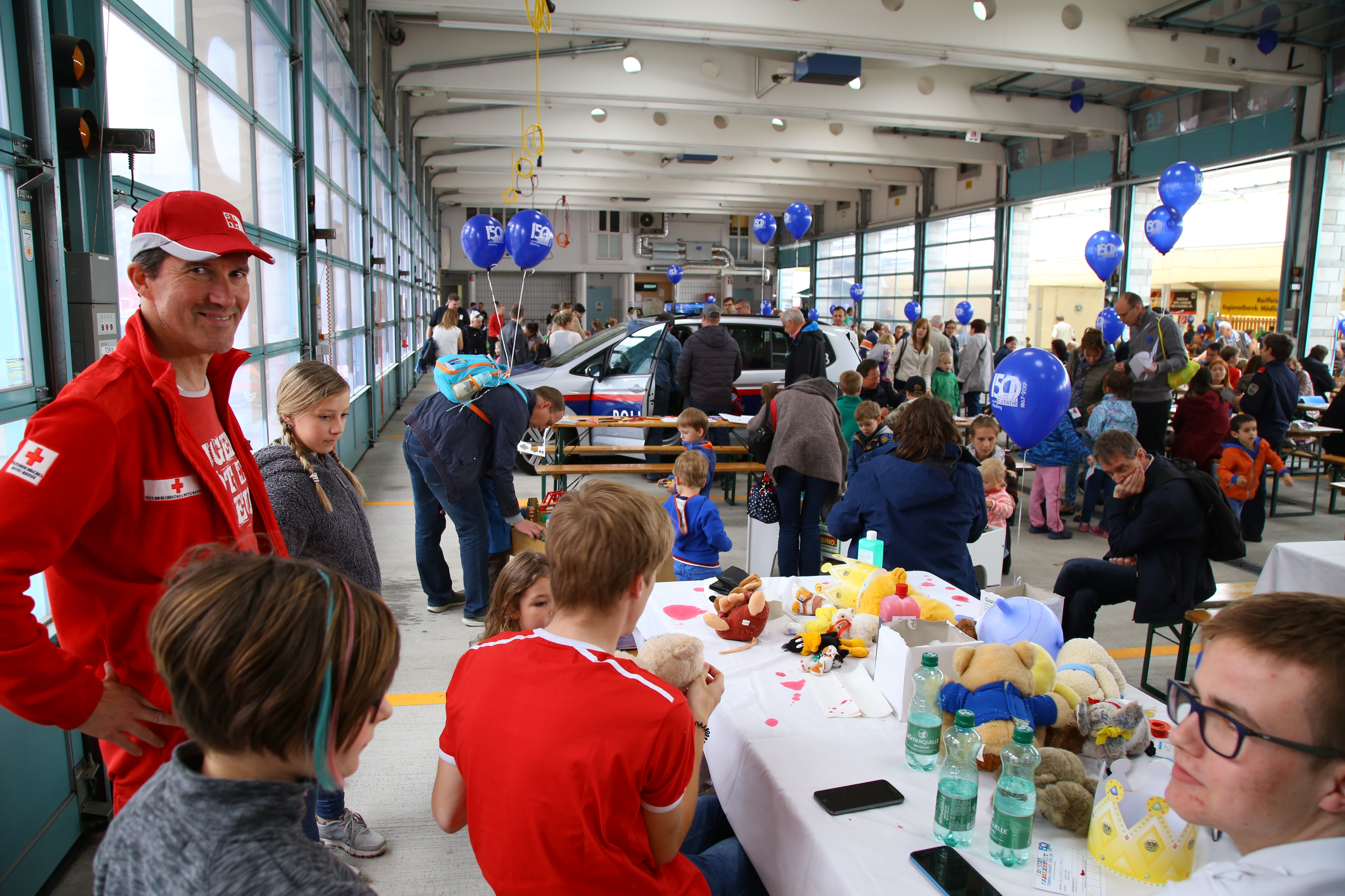 Schon bald strömten zahlreiche Besucher heran; für viel Spaß und Action war gesorgt, und Groß und Klein konnten sich bei zahlreichen Stationen vergnügen. Neben der Riesenrutsche, der Hüpfburg, dem Kistenklettern und Ponyreiten gab es in der Fahrzeughalle die Teddybär Verbandstation des Roten Kreuzes, den Gurtsimulator, die "Rauschbrille" beim ÖAMTC, das Kinderschminken und ein Polizeiauto zu erkunden.