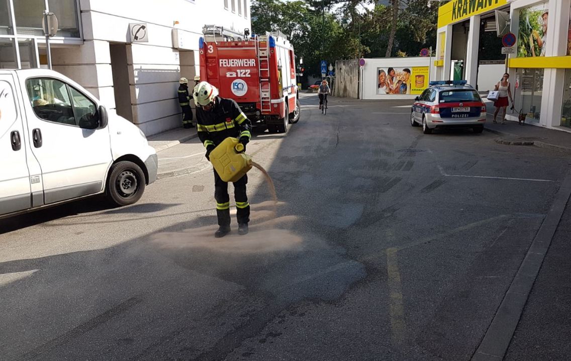 Zur Beseitigung einer sehr langen Ölspur wurde die FF Mödling am Morgen des 31. August alarmiert. Ein defektes Fahrzeug hatte offenbar eine größere Runde durch das Stadtgebiet gedreht, ehe der Schaden bemerkt wurde.