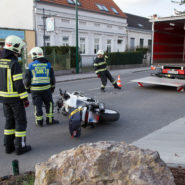 Vor Ort wurde die Unfallstelle bereits durch eine Polizeistreife abgesichert. Der Lenker des Motorrades, welches mit einem Fahrzeug kollidierte, wurde bereits durch den Rettungsdienst erstversorgt und in ein Krankenhaus eingeliefert. Aufgrund der massiven Beschädigungen an der Frontseite des Zweirads entschied sich der Einsatzleiter, das Motorrad mittels dem bereits mit ausgerückten Versorg 2 zu bergen. Mit Hilfe der Ladebordwand wurde das Fahrzeug verladen und anschließen für den Transport ausreichend gesichert. Parallel dazu wurde die Straße durch die Feuerwehr und die städtischen Kehrmaschine gereinigt. Nach ca. 20 Minuten waren alle Arbeiten vor Ort beendet, und das Motorrad wurde gesichert am Feuerwehrareal abgestellt.