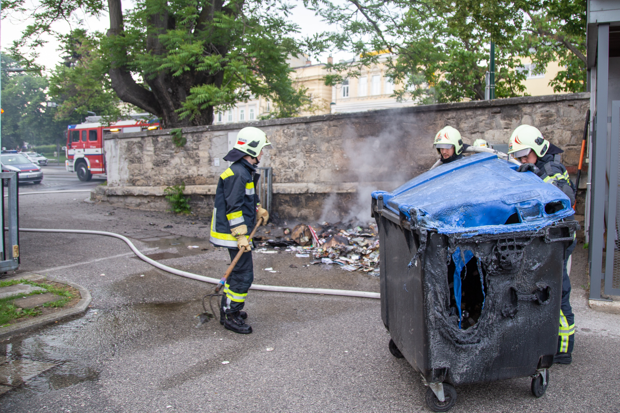 Bereits bei der Anfahrt wurde über die Bezirksalarmzentrale gemeldet, dass sich der Brand auf weitere Müllcontainer ausgebreitet hatte und sich im Nahebereich eines Gaszähler befindet. Bis zum Eintreffen des ersten Fahrzeuges meldeten neun aufmerksame Personen dieses Feuer via Notruf 122 in der Bezirksalarmzentrale.