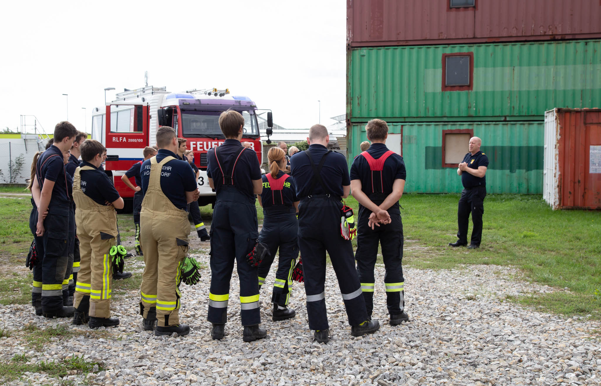 Auf dem Tagesprogramm standen neben der Organisation und Ablauf eines Feuerwehreinsatzes auch die Gefahrenerkennung im Einsatzfall und das richtige Absichern einer Einsatzstelle am Vormittag. Anschließend verköstigte unsere Kantine die 25 anwesenden Feuerwehrmänner und -frauen mit Schinkenfleckerln.