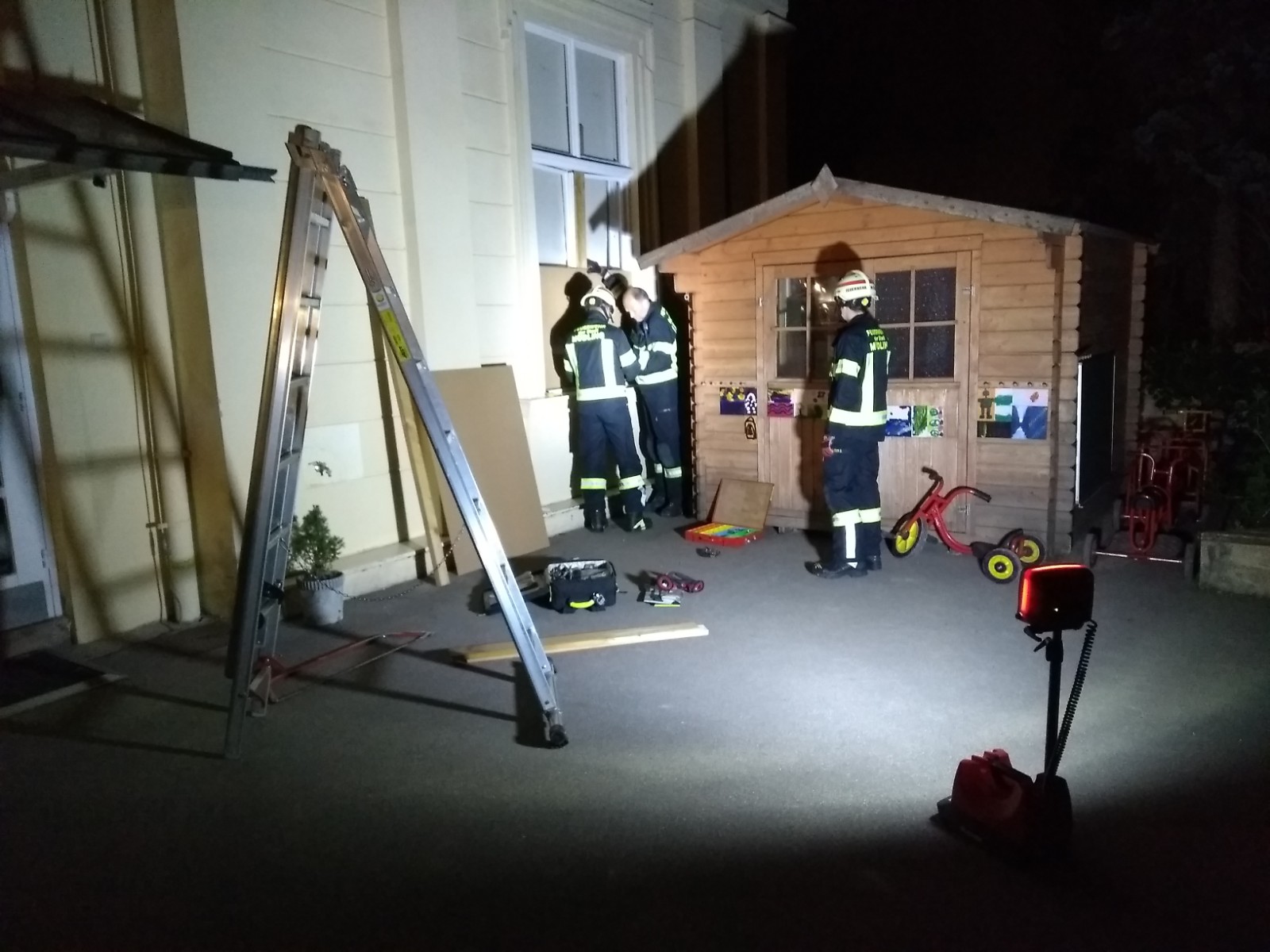 Unbekannte hatten eine Glasscheibe des Kindergartens in der Brühlerstraße beschädigt. Die ausgerückte Feuerwehr Mödling konnte die entstandene Öffnung provisorisch verschließen. Seitens einer Fachfirma wurden weitere Maßnahmen ergriffen. Erst gegen zwei Uhr konnten die rein ehrenamtlichen Einsatzkräfte wieder erschöpft in Ihre Betten zurückkehren!