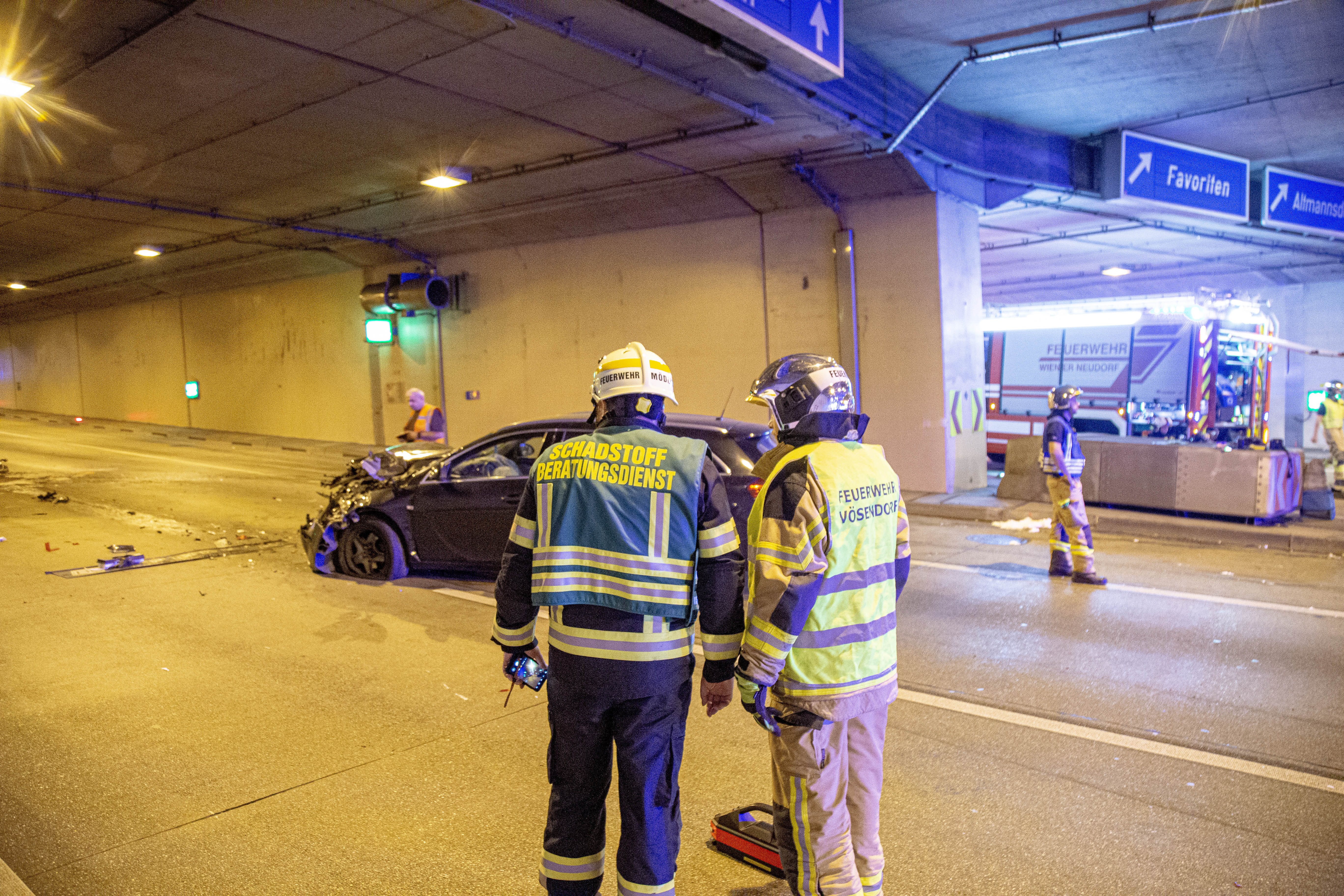 Aus bisher unbekannter Ursache kam es zur Kollision zweier Fahrzeuge im Tunnel Vösendorf. Dabei wurde das Heck des mit Aceton/Methylisobutylketon beladenen Gefahrguttransporters so stark beschädigt das geringe Mengen des Schadstoffes austraten.