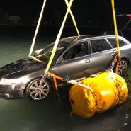 Glücklicherweise konnte sich der Lenker des PKWs selbst unverletzt aus seinem Fahrzeug befreien. Beim Eintreffen der örtlich zuständigen Feuerwehr Münchendorf befand sich der PKW rund 25 Meter vom Ufer entfernt in einer Wassertiefe von ca. 3 Meter.