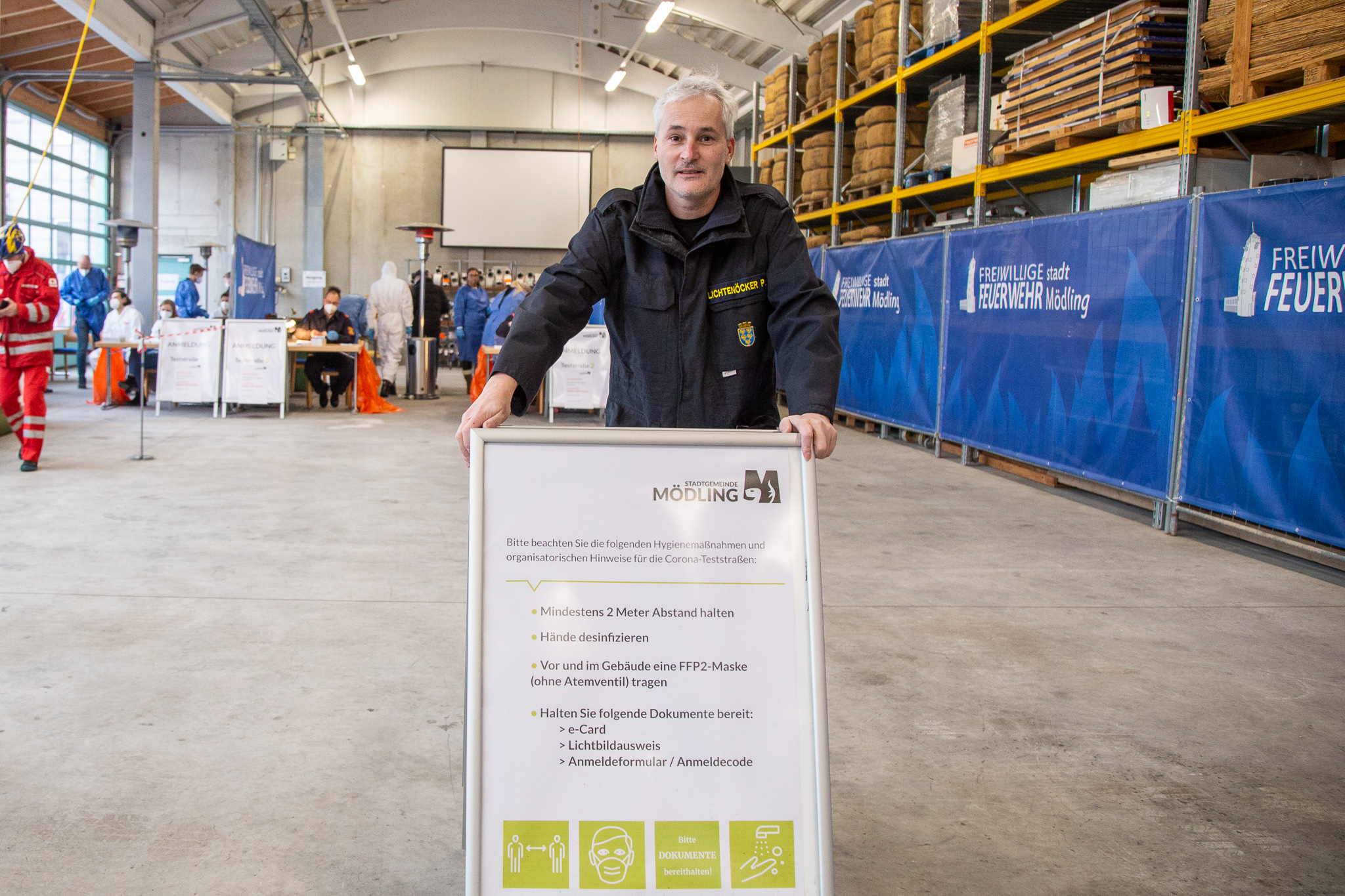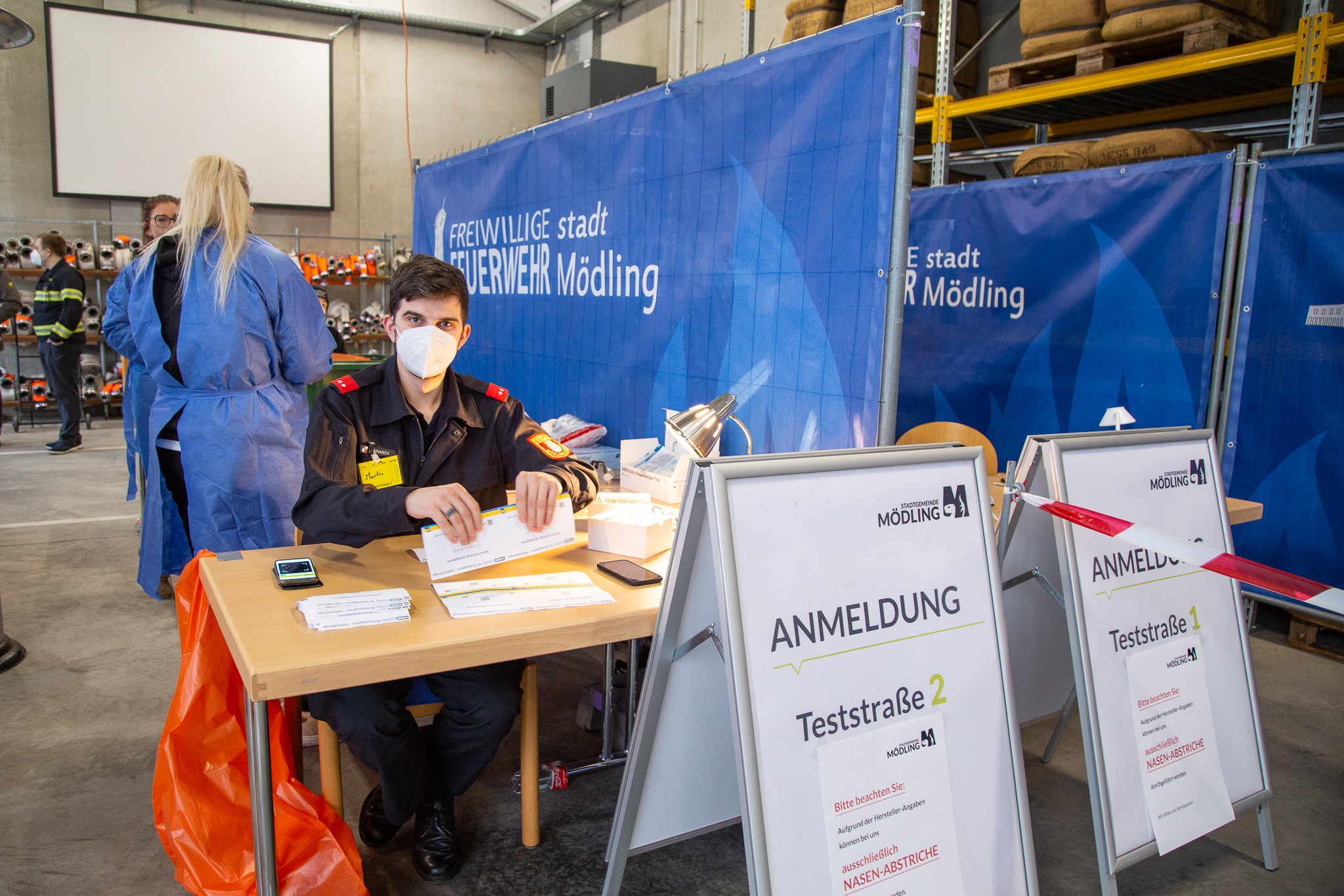 Aufgrund des großen Interesses der Bevölkerung an der kostenlosen Teststraße in Mödling und der teils langen Wartezeit in der letzten Woche, wurde unter der Leitung des Referates für Zivil- und Katastrophenschutzes BR Peter Lichtenöcker, der Stadtgemeinde Mödling, sowie der Feuerwehr Mödling bei der BM Peter Kolar als Verbindungsoffizier fungiert, kurzerhand beschlossen einen Teststandort in der Garage für Sondereinsatz- und Katastrophenschutzmittel am Areal der Feuerwehr zu errichten.