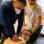 Neben einer kurzen Unterweisung in den bei jedem Einsatz mitgeführten Ersthelfer Rucksack, wurden die theoretischen Grundlagen einer Herz Kreislauf Wiederbelebung (Reanimation) näher behandelt. Im Anschluss wurde in zwei Stationen die Reanimation und die richtige Anwendung des Defibrillators praktisch beübt.