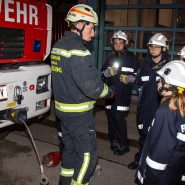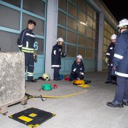 Die dritte Gruppe hatte die "Fahrzeugseilwinde" als Thema. Dabei ging es um die im Feuerwehrdienst üblichen Anschlagmittel wie Ketten, Rundschlinge, Seile und wie man diese mit den verschiedenen Schäkel richtig befestigt. Schlussendlich wurde der Abschlepphaken am Kommandofahrzeug angebracht und dieses Auto mit der Fahrzeugseilwinde gezogen.