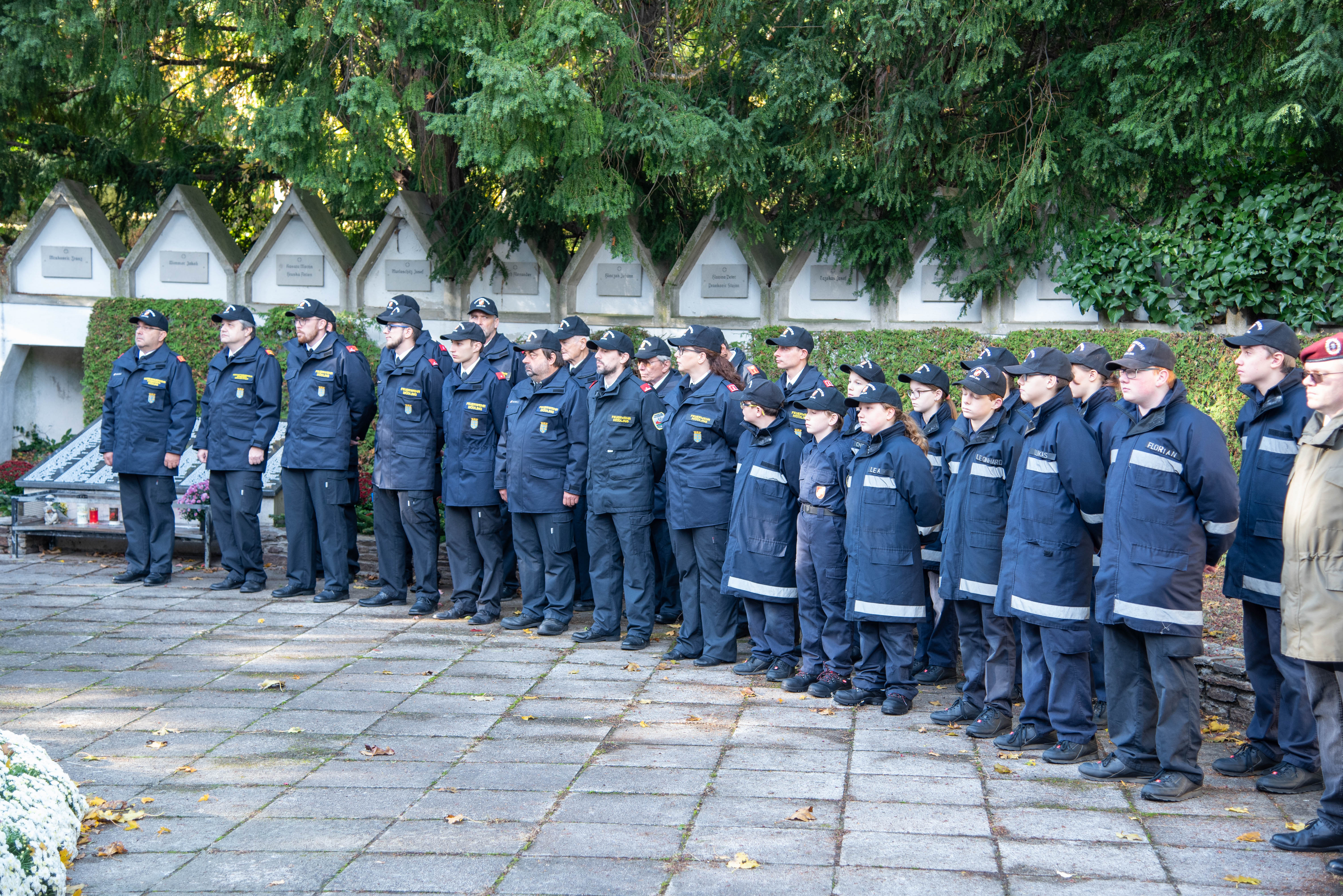 Zu Allerheiligen treffen sich KameradInnen der Feuerwehr samt Feuerwehrjugendmitgliedern, dem Roten Kreuz, dem Kameradschaftsbund, der Blasmusik Mödling und den politischen Vertreten der Stadtgemeinde Mödling traditionell am Friedhof zum Totengedenken.
