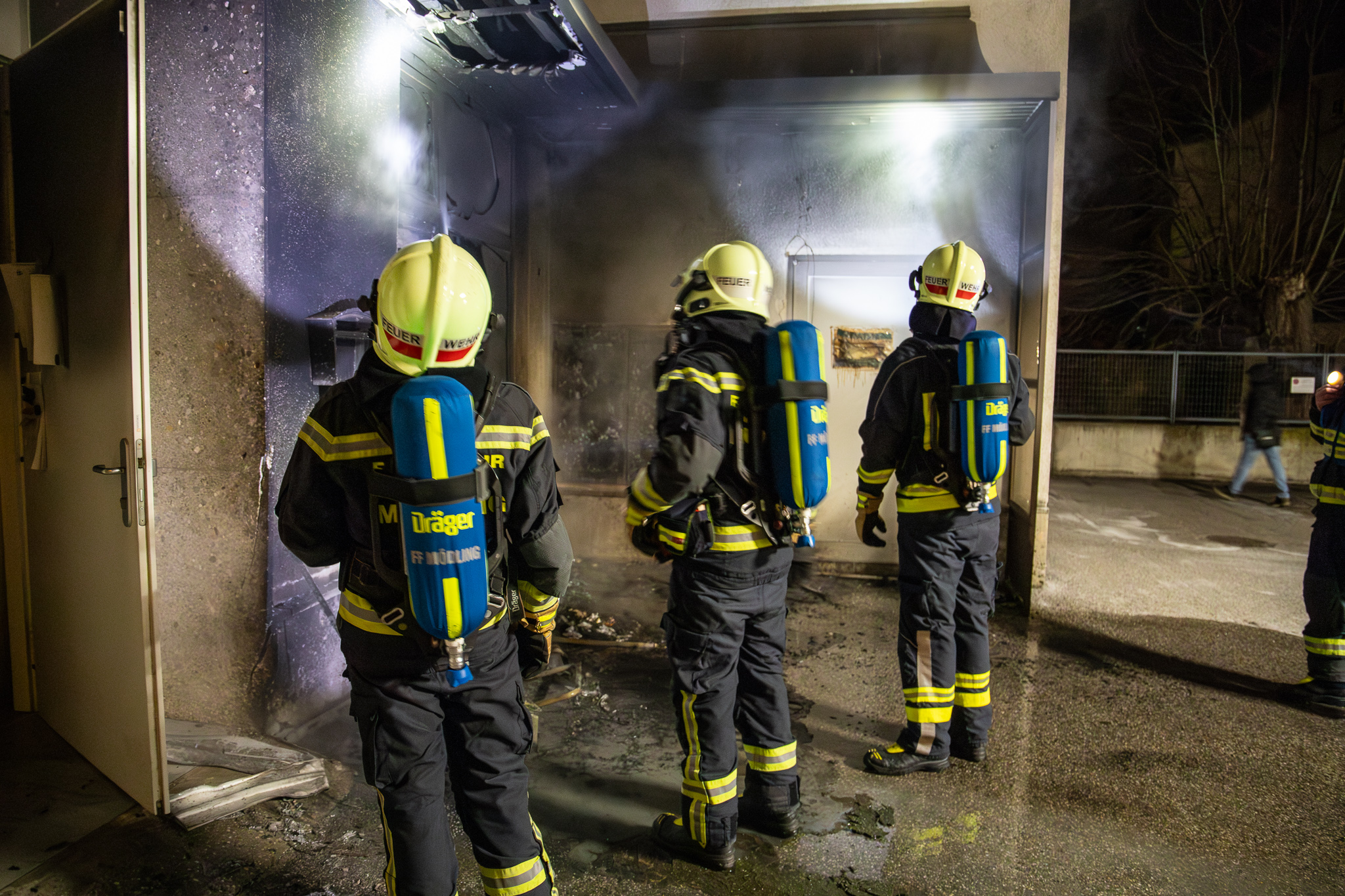 Glücklicherweise befand sich zum Zeitpunkt der Alarmierung ein Feuerwehrmitglied ganz in der Nähe in einem Lokal und konnte gemeinsam mit der Polizei das Feuer bis zum Eintreffen der Einsatzkräfte mit einem Feuerlöscher in Schach halten.