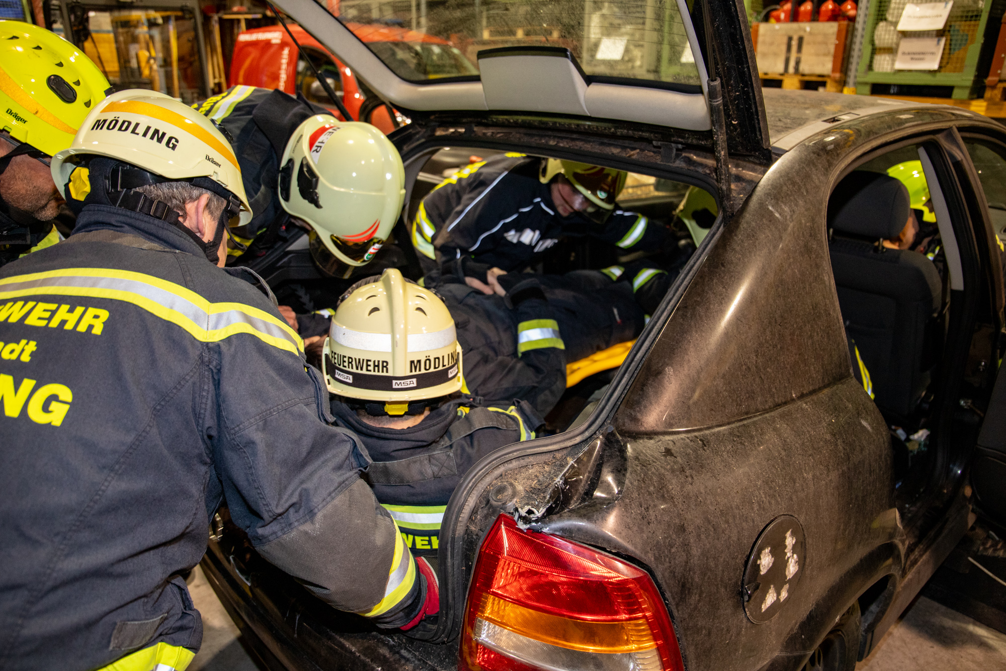 An den vergangenen zwei Übungsdienstagen wurde die Mannschaft auf zwei Stationen aufgeteilt. Bei der ersten Station musste eine Person aus einem verunfallten PKW über die Heckklappe gerettet werden. Bei der zweiten Station musste eine Person auf ein Spineboard gelagert, fixiert und dann in eine Schleifkorbtrage gehoben werden. Anschließend wurde die Person im Beisein eines Feuerwehrmannes mit dem Kran des schweren Rüstfahrzeuges verhoben.