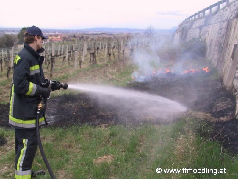 In den Weingärten hatte ein Flurbrand bereits einen Telegraphenmast erfasst und breitete sich weiter über einen Teil der trockenen Wiesenfläche aus.