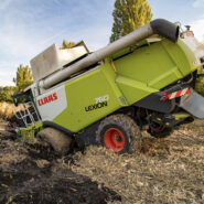 Kraneinsatz zur Unterstützung der Feuerwehr Velm bei Fahrzeugbergung eines Mähdreschers