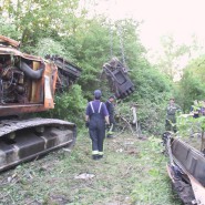 Das stark beschädigte, aber robuste Raupenfahrzeug wurde noch in den Abendstunden von firmeneigenen Mechanikern soweit instandgesetzt, um selbständig aus der Grube fahren zu können.