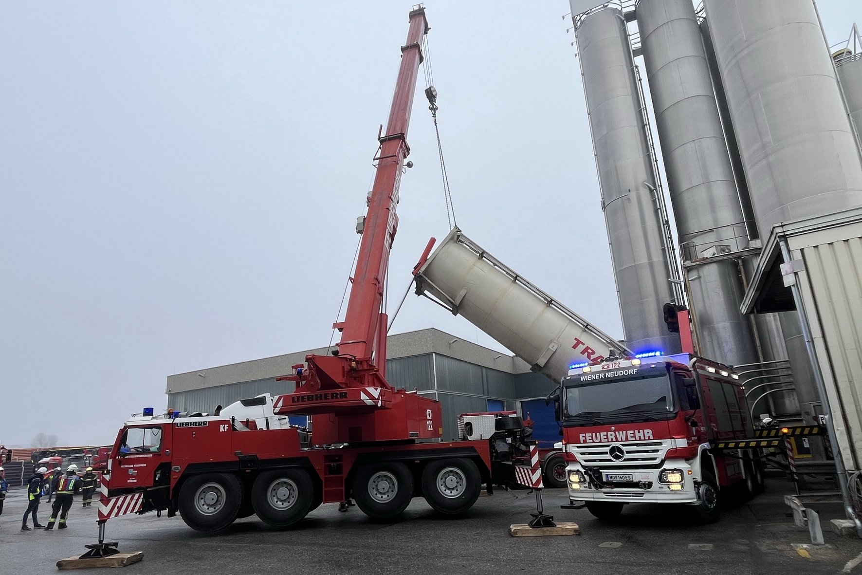 Am Vormittag des 25. Februar 2025 wurde die Freiwillige Feuerwehr Wiener Neudorf zu einem technischen Einsatz ins Industriezentrum Niederösterreich Süd alarmiert. Ein Silofahrzeug eines externen Zulieferers geriet während des Entladevorgangs von Kunststoffgranulat in gefährliche Schieflage und drohte umzustürzen.