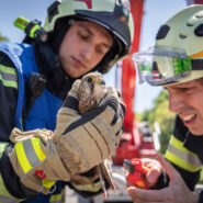 Aus nächster Nähe stellte die Feuerwehr fest, dass ein Falke an Plastikfäden neben seinem Nest festhing. Er hatte diese Plastikwolle zum Nestbau verwendet, die ihm nun zur Falle wurde. Behutsam konnte das Tier mit einer Schere befreit und zu Boden gebracht werden. Dort wurden noch restliche Schlingen vom Fuß entfernt. Danach wurde das unverletzte Tier wieder frei gelassen.