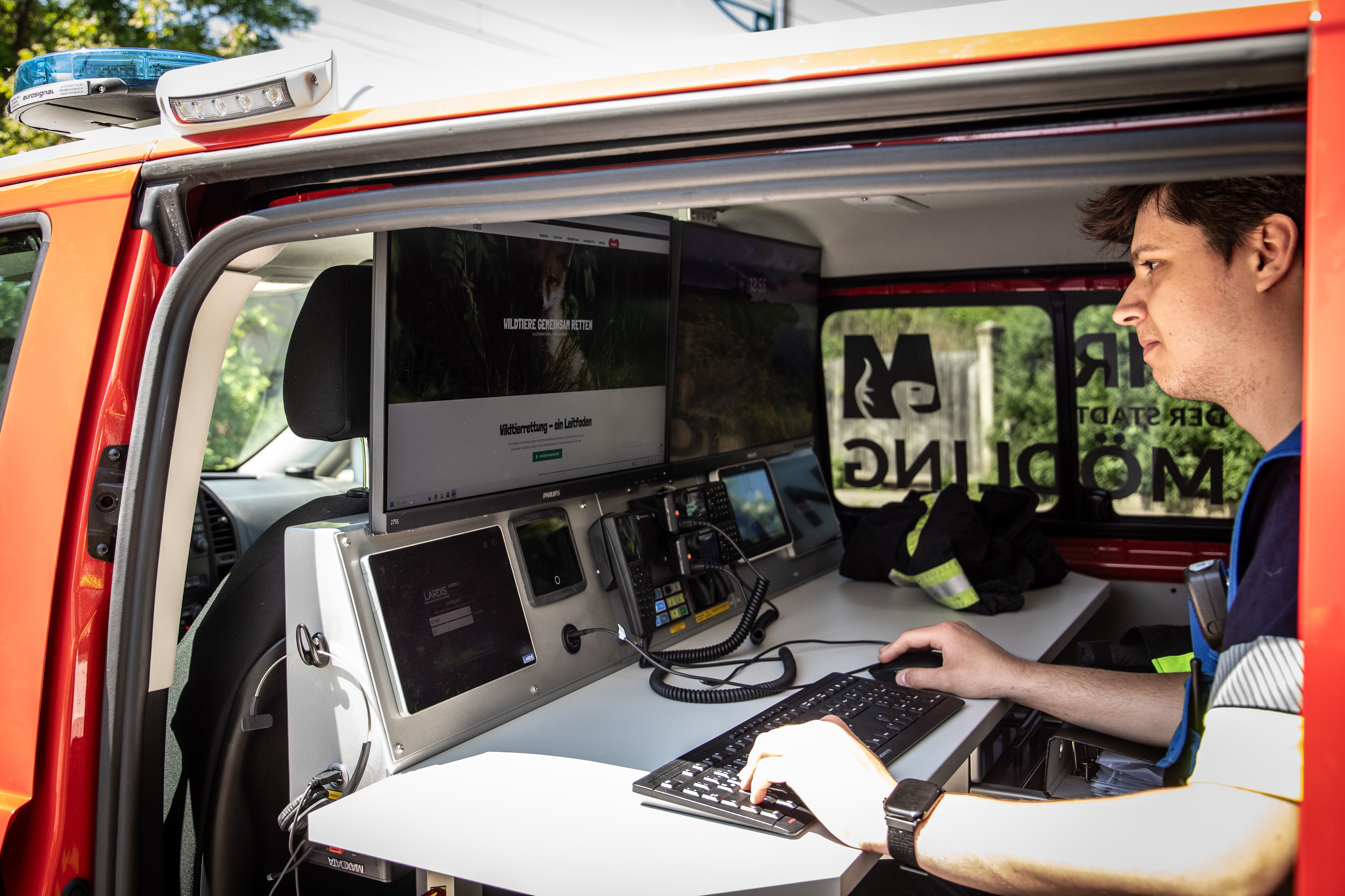 Die  Bereichsalarmzentrale Mödling alarmierte daher zur Mittagszeit die Feuerwehr der Stadt Mödling zur Tierrettung. Nach der Erkundung des Einsatzleiters  wurde das Hubrettungsfahrzeug aufgestellt. Dazu musste die Straße gesperrt werden.