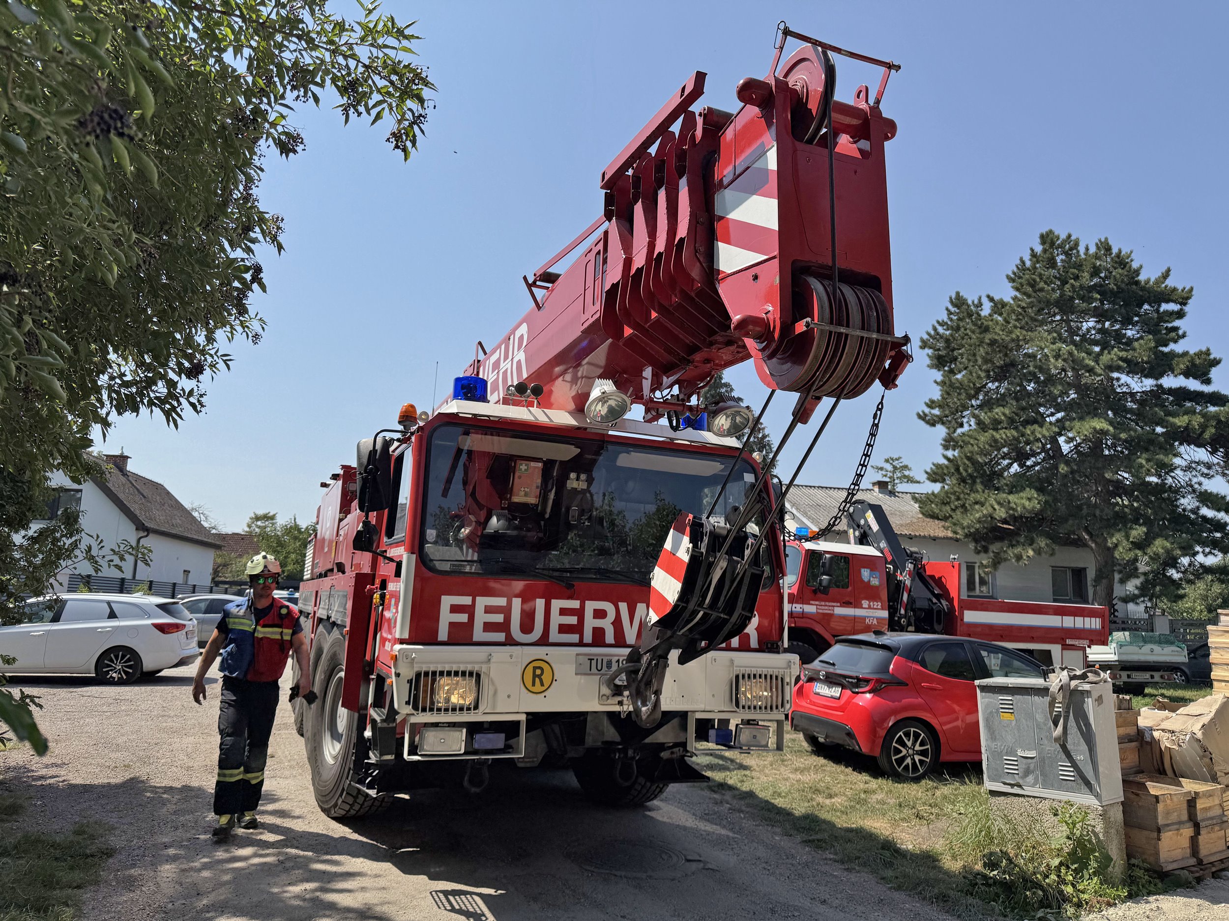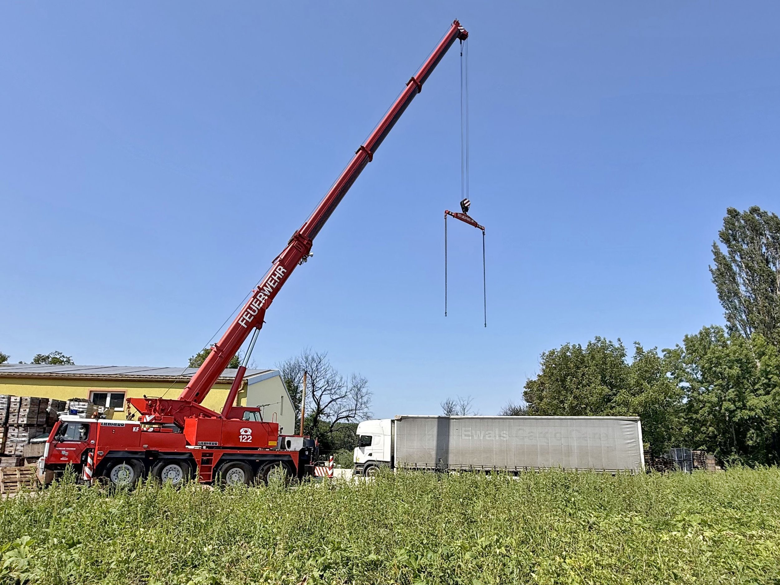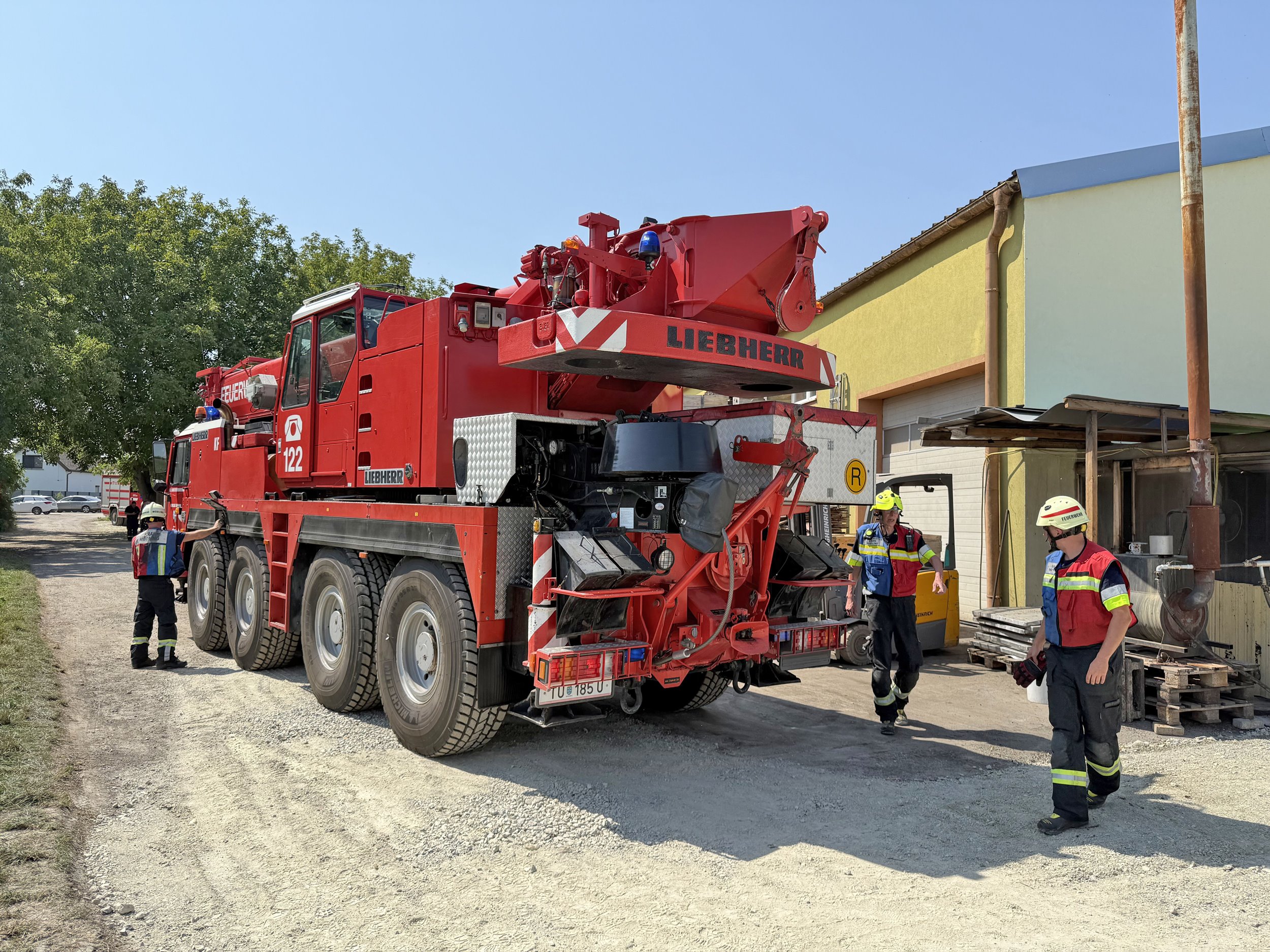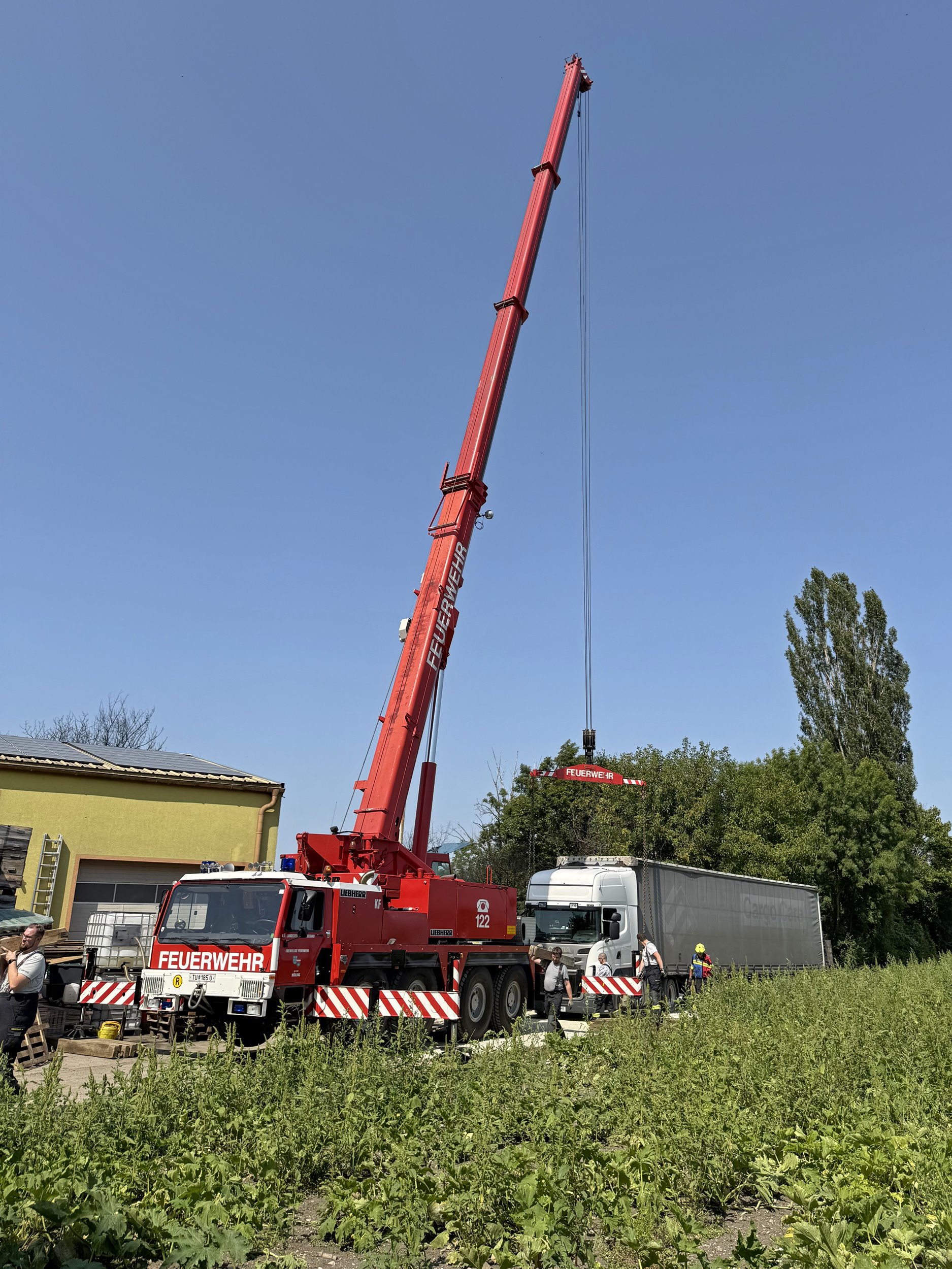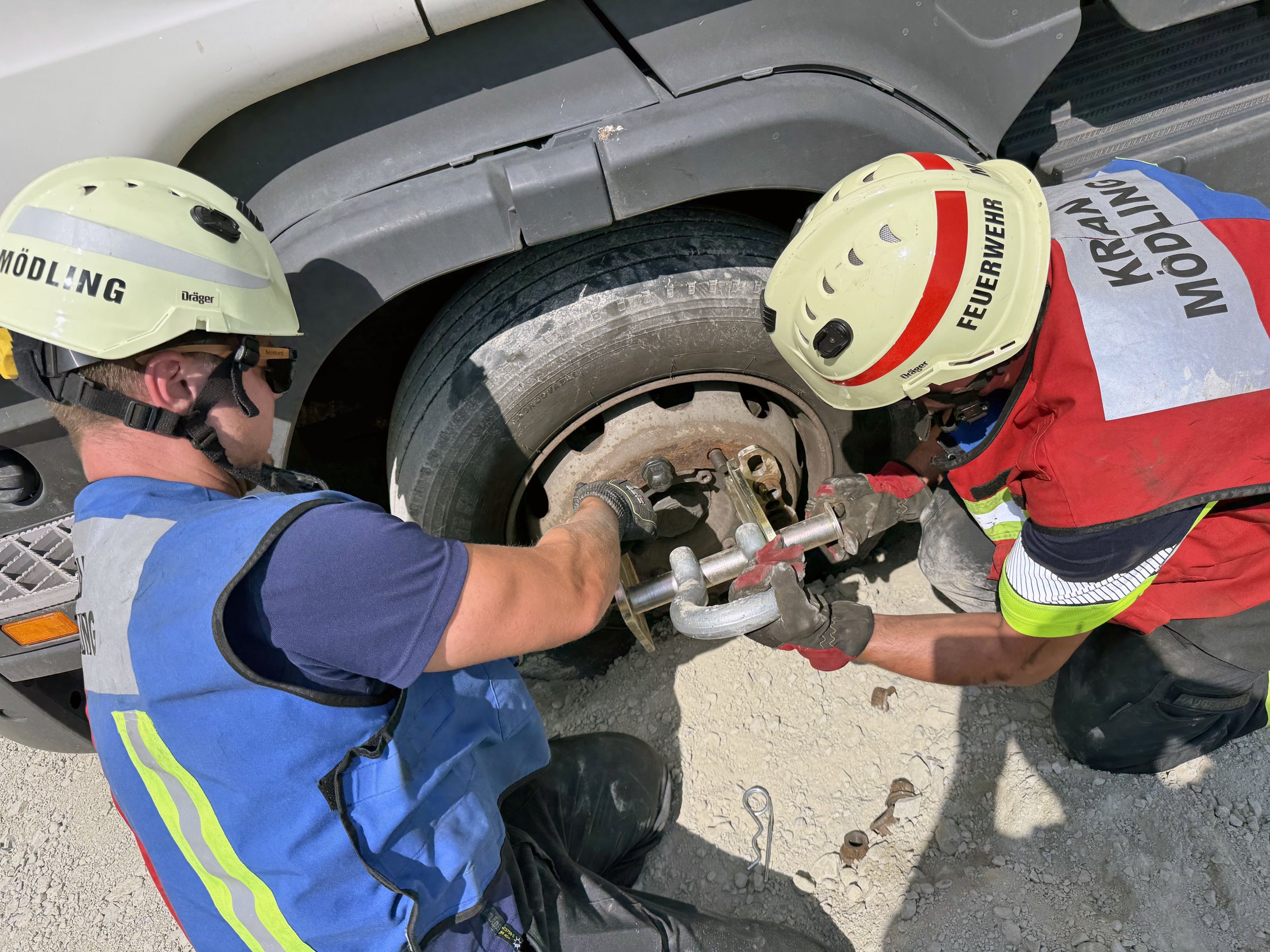 Aus diesem Grund wurde das Kranfahrzeug des NÖ Landesfeuerwehrverbandes stationiert bei der Freiwilligen Feuerwehr Mödling angefordert.