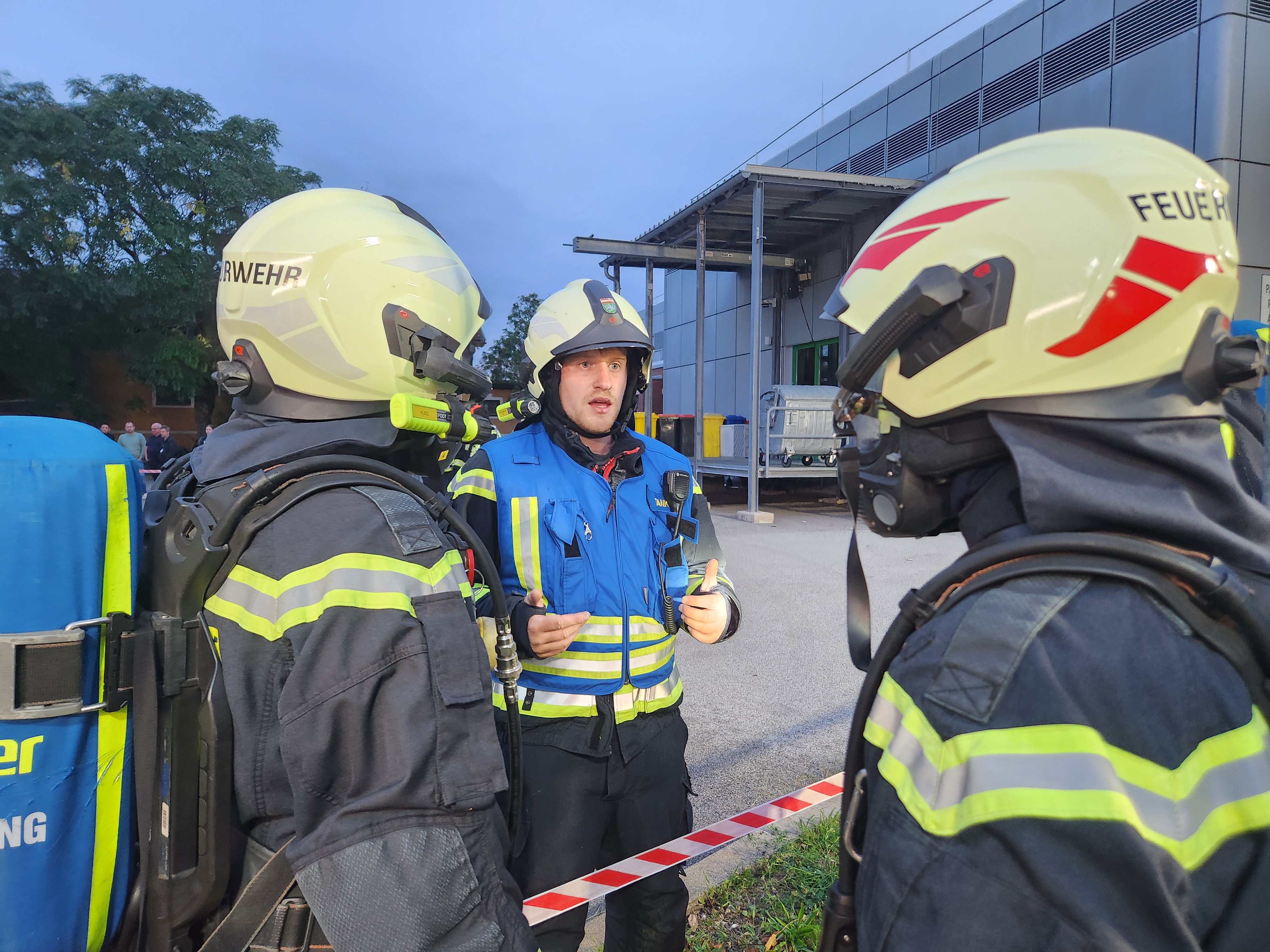 Eine ausgelöste Brandmeldeanlage im Labor mit folgender Menschenrettung war das Szenario der diesjährigen Großübung am Gelände der AGES in Mödling. Einsatzkräfte von Feuerwehr und Rettungsdienst trainierten mit gemeinsam mit den Mitarbeitern für den Ernstfall.