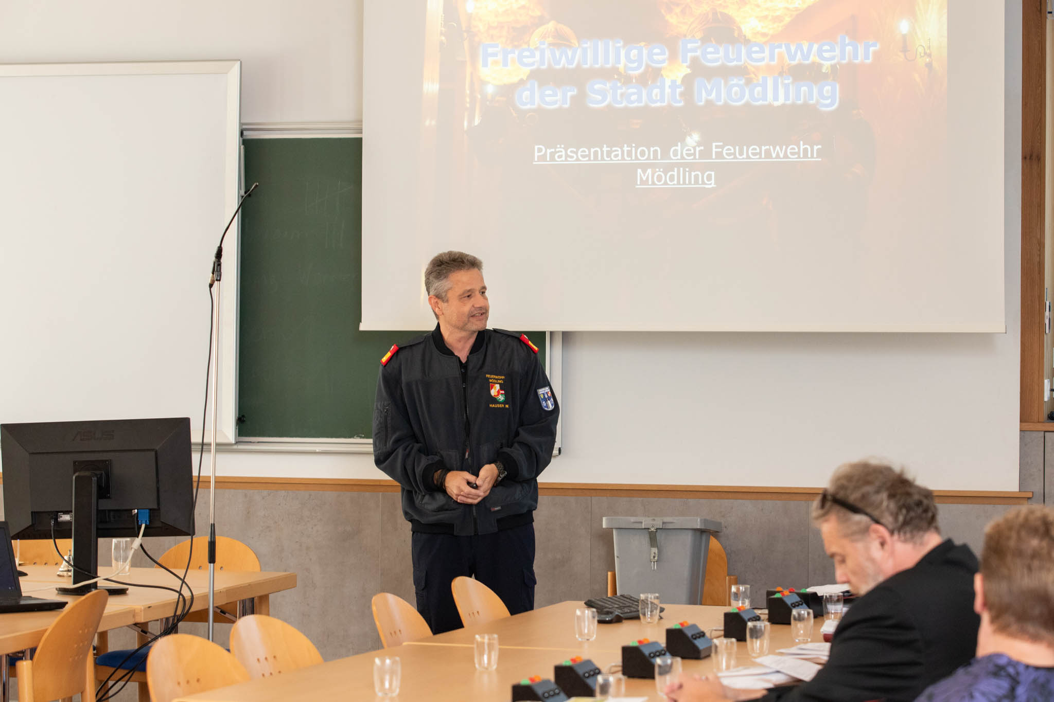 Am 3. Oktober wurde eine Gemeinderatssitzung im Feuerwehrhaus abgehalten. Im Vorfeld wurden die Stadt- und Gemeinderäte zu einer Vorstellung der Freiwilligen Feuerwehr Mödling eingeladen.