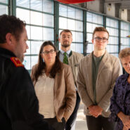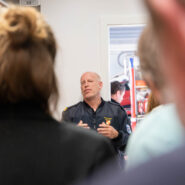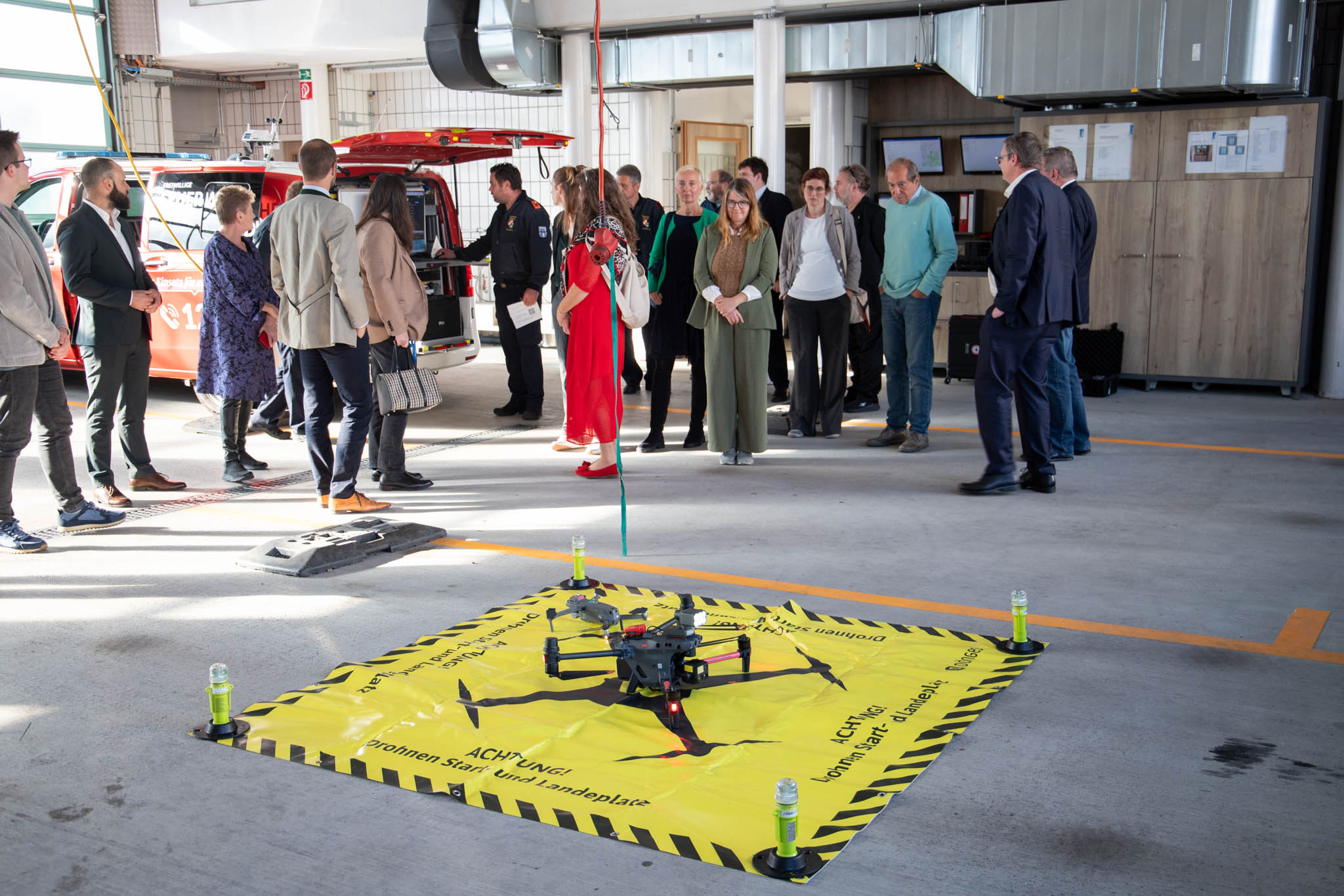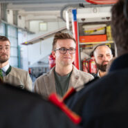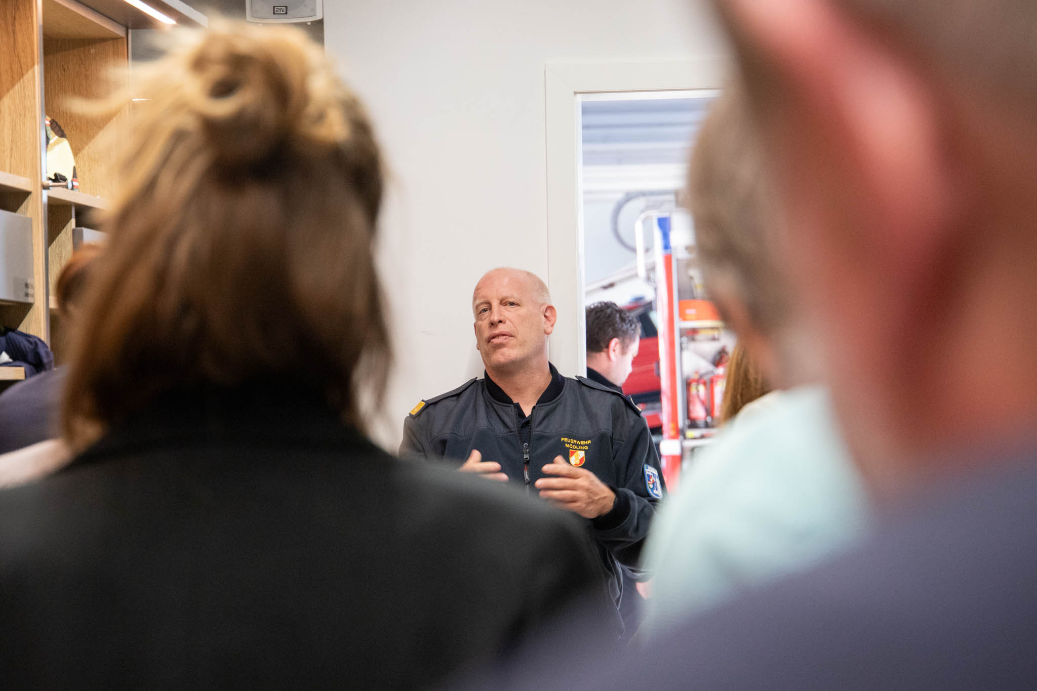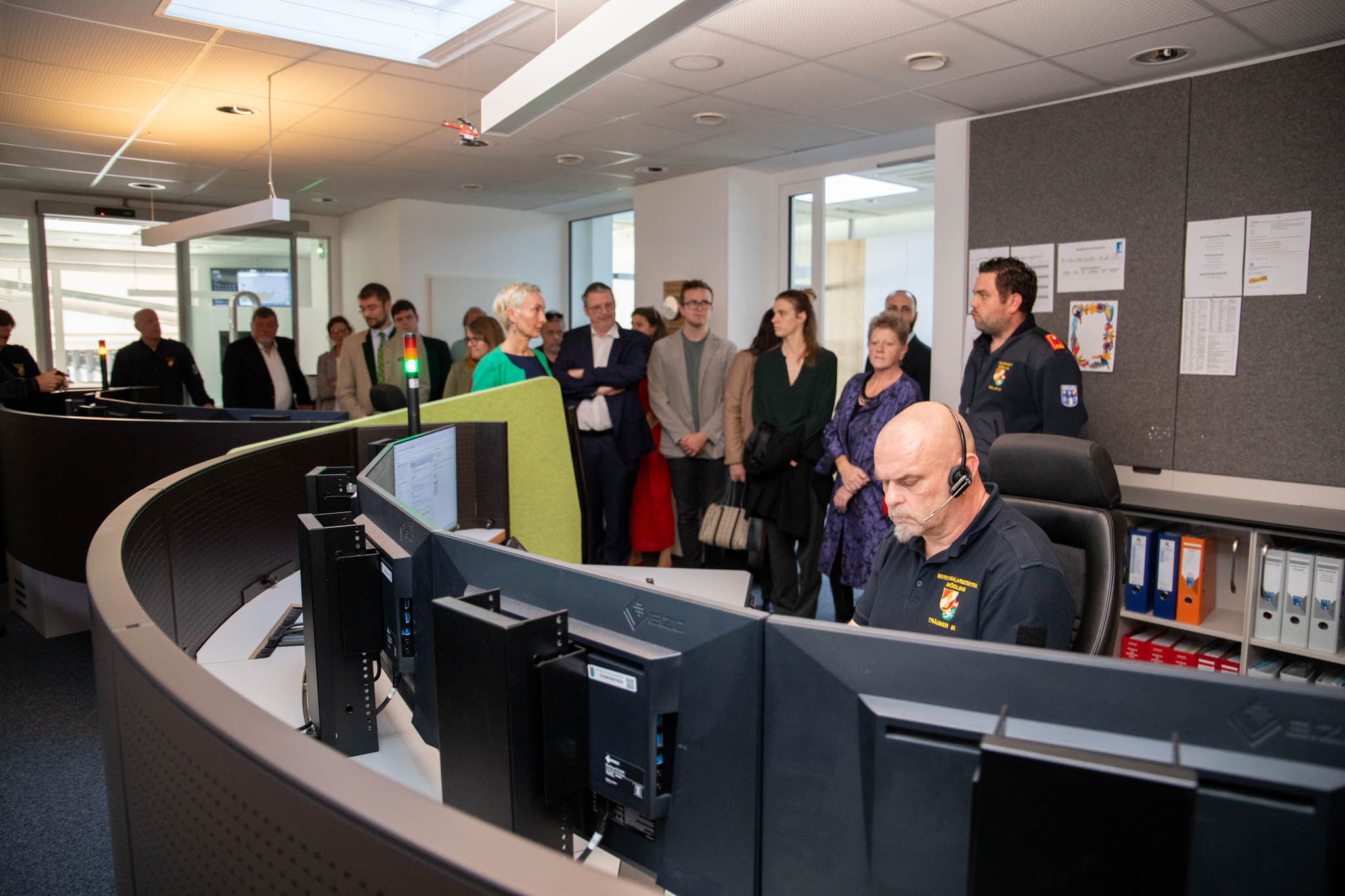 Im Anschluss folgte eine Führung durch das Feuerwehrhaus. Neben der Besichtigung der neuen Bereichsalarmzentrale wurde der umfassende Fuhrpark vorgestellt. Im Rahmen der Besichtigung bekamen die Gemeinderäte die Gelegenheit am Rande einen echten Einsatz mitzuerleben. Während bei der Besichtigung der Bereichsalarmzentrale ein Notruf über einen Verkehrsunfall auf der Südautobahn einlangte, rückte die Feuerwehr Mödling während der weiteren Vorstellung zu einem Brandeinsatz aus. Dabei zeigten sich einige Besucher insbesondere von der raschen Ausrückezeit begeistert.