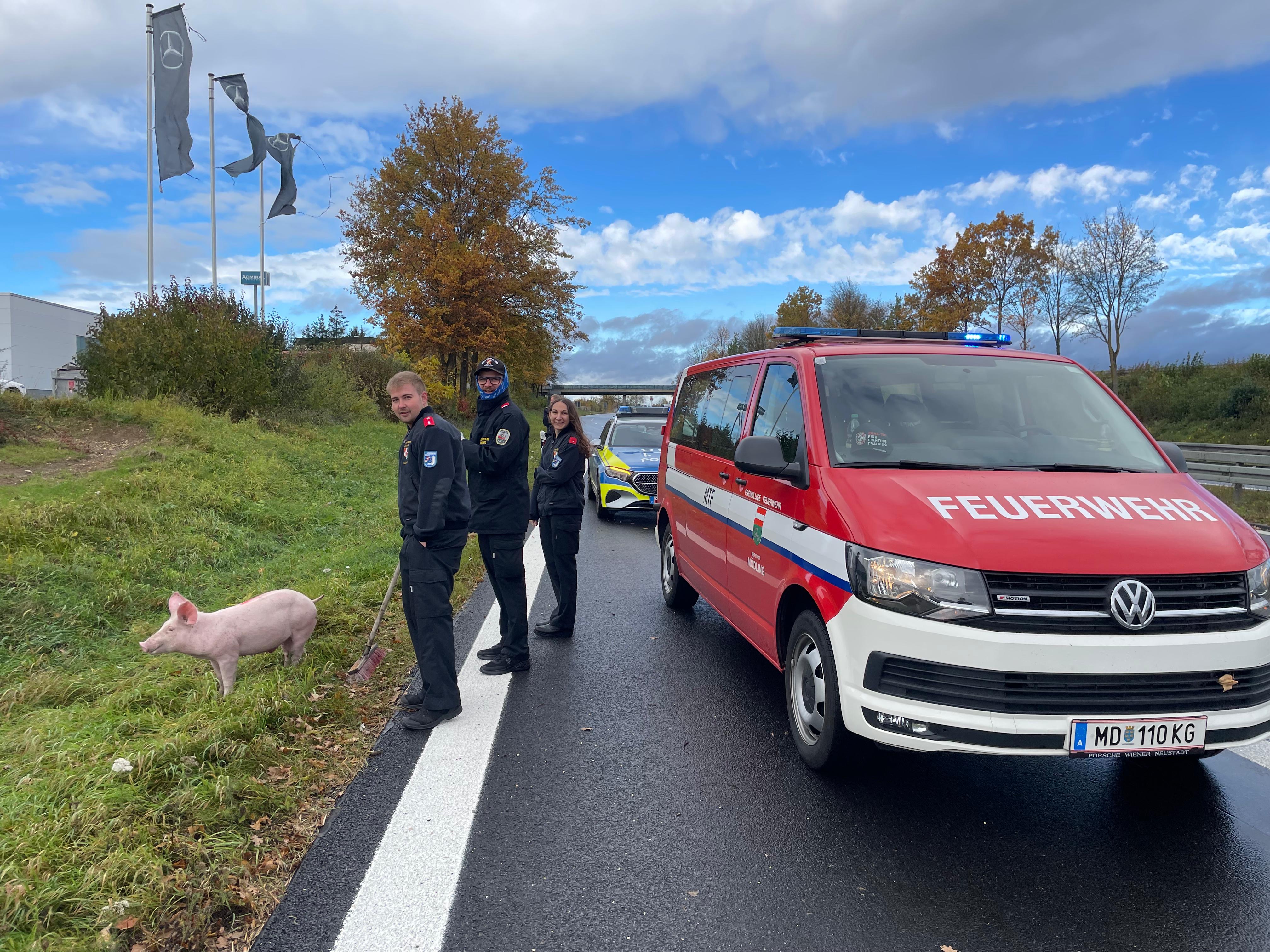 Vergangene Woche besuchten vier Einsatzkräfte eine ganz besondere Heißausbildung in Deutschland (Bericht folgt). Am Rückweg staunten die Mödlinger Feuerwehrkameraden nicht schlecht als sie auf der Fahrbahn einer deutschen Schnellstraße ein Schwein entdeckten.