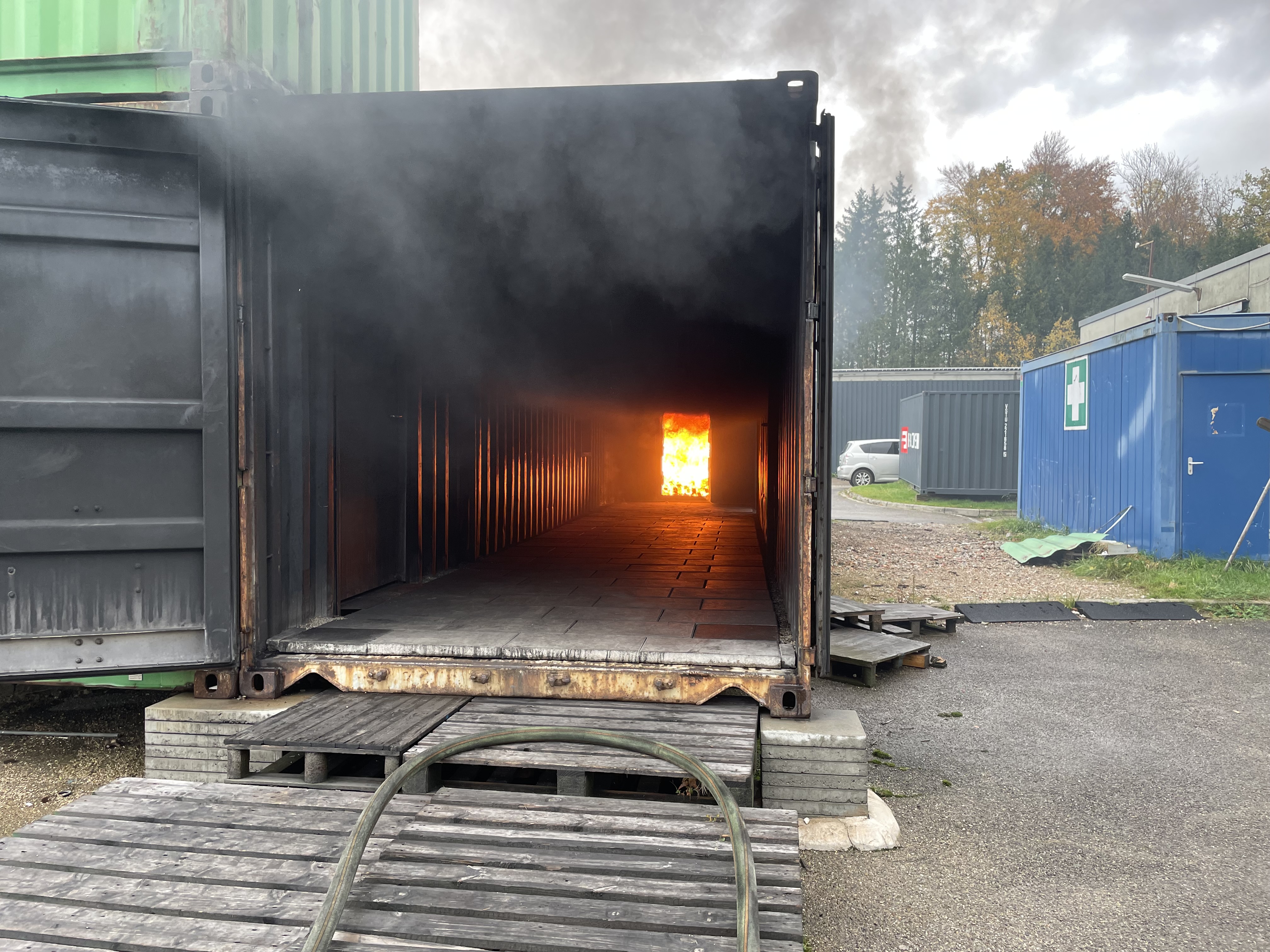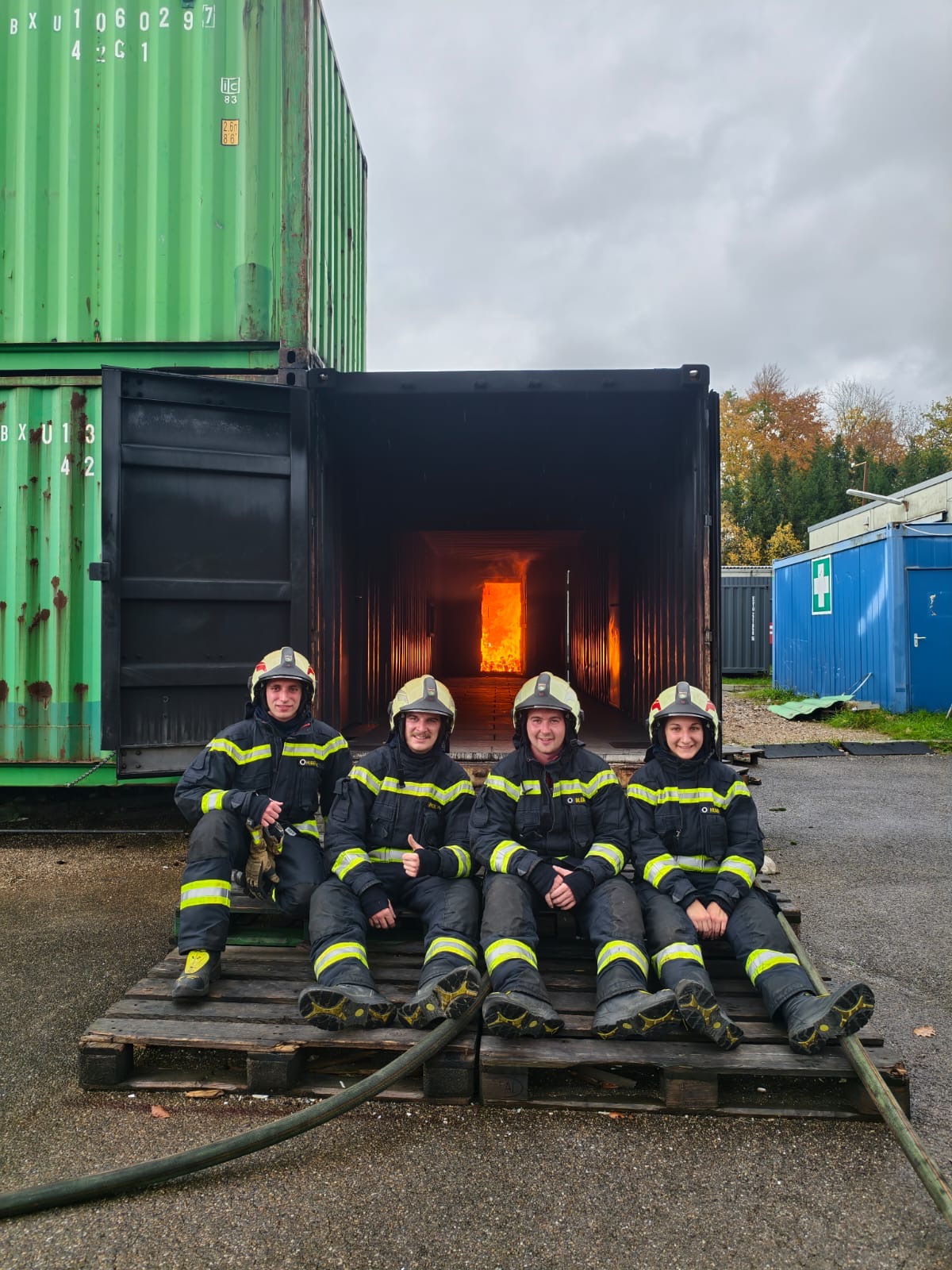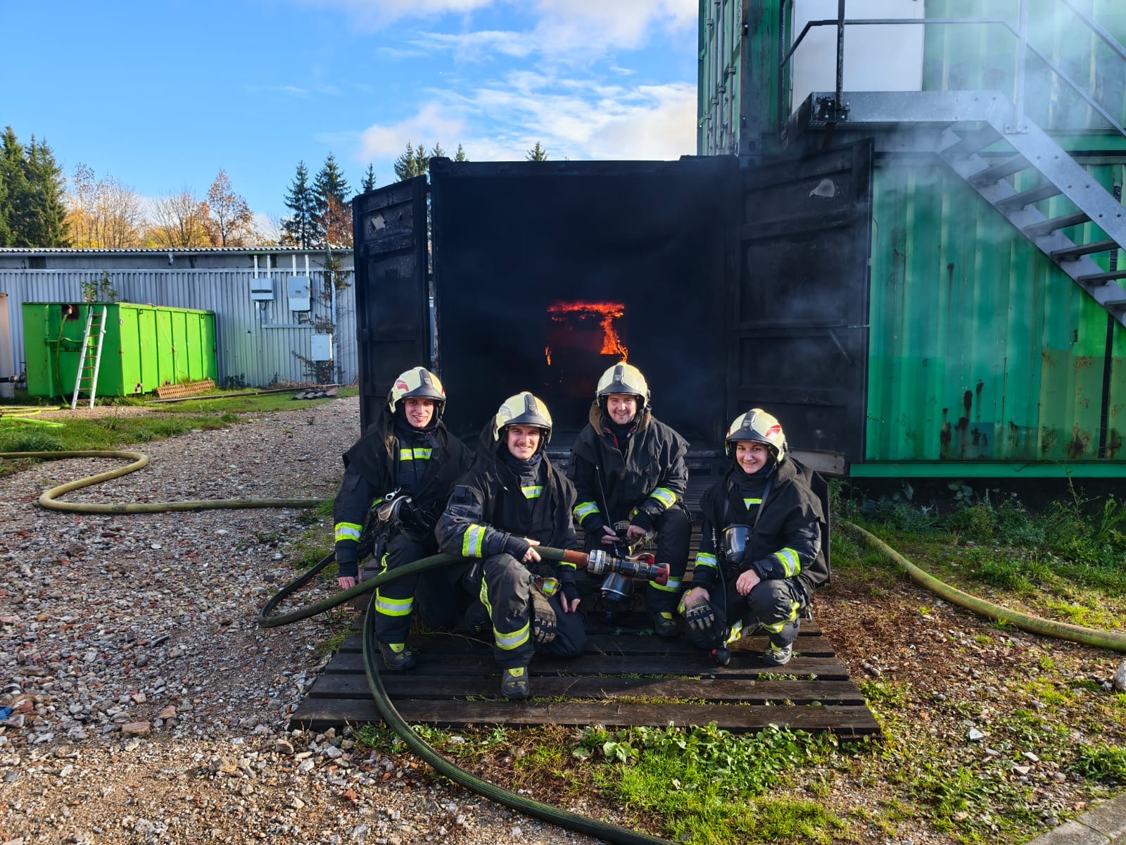 Im Oktober nahmen 4 unserer Einsatzkräfte an einer dreitägigen Heißausbildung, Stufe 6 – Rauchdurchzündungsanlagen, nahe Ulm (Deutschland) teil.