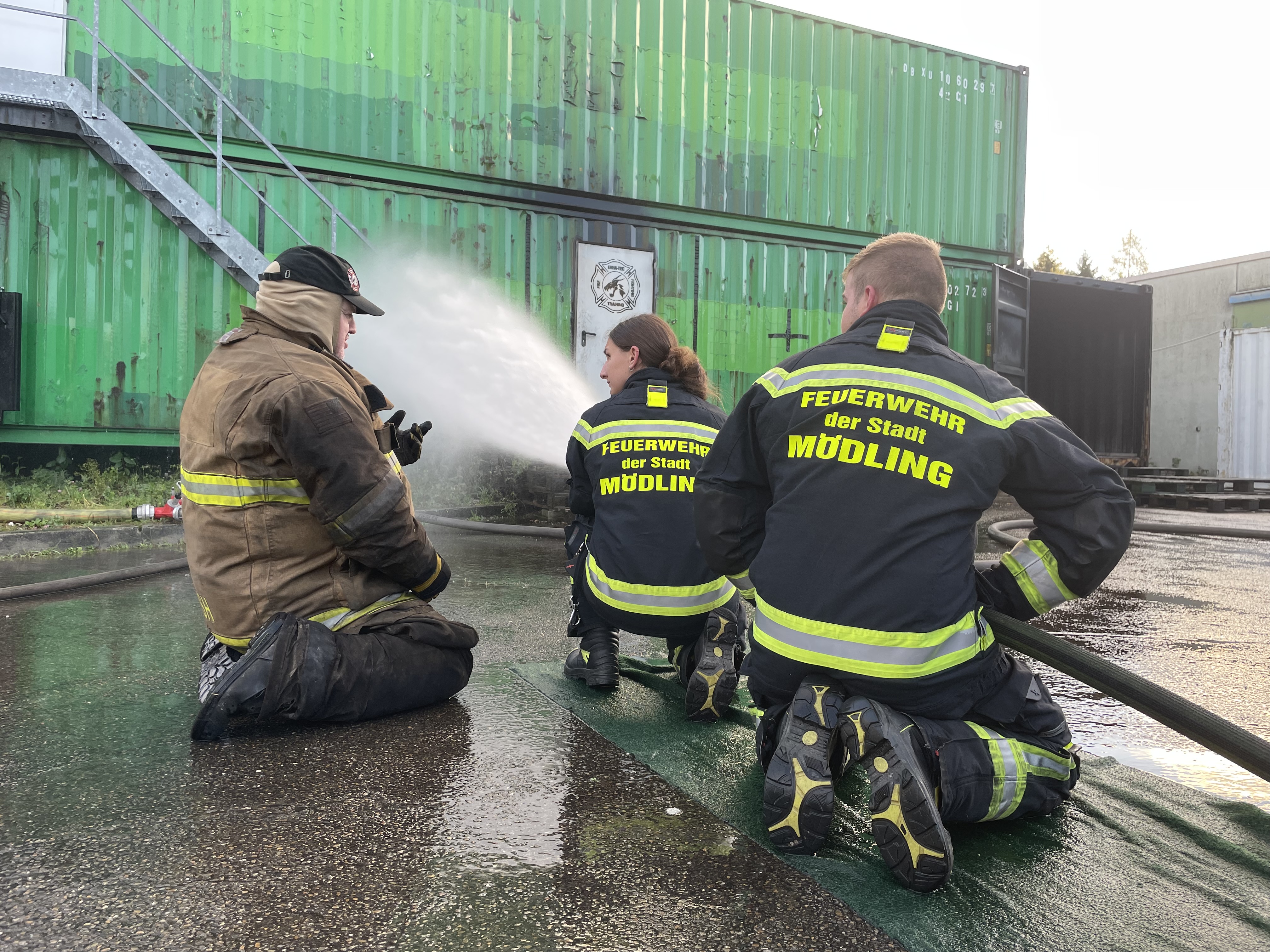 Am Abreisetag wurde nochmal die Rauchgaskühlung sowie die Brandbekämpfung und das Vorrücken über lange Wegstrecken geübt. Unsere Einsatzkräfte nahmen zuletzt noch die Möglichkeit war, die nahe gelegene Hauptfeuerwache Ulm zu besuchen. Nach einem herzlichen Willkommen bekamen die Mödlinger spannenden Einblick in das System und Taktik der Feuerwehren in Deutschland.