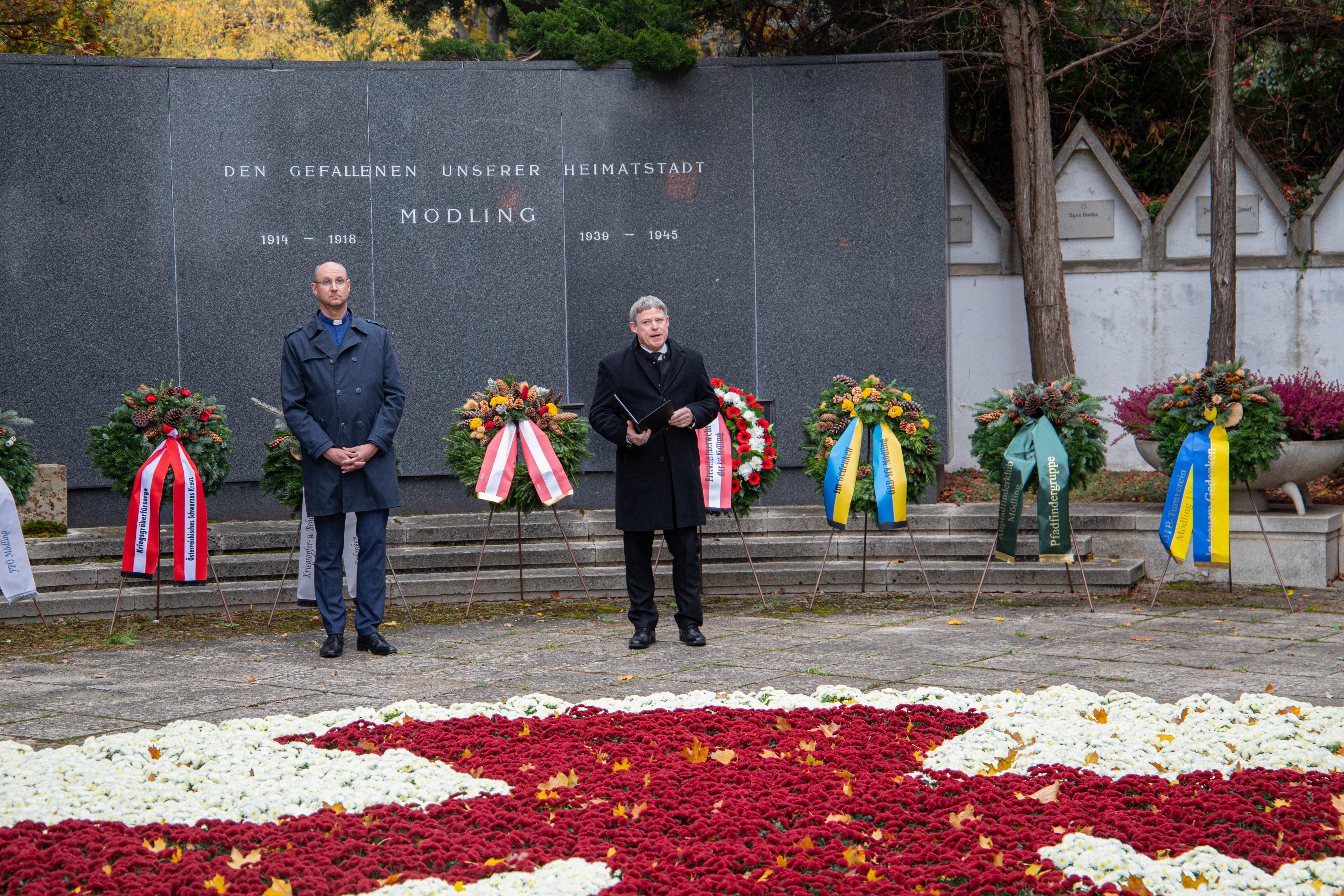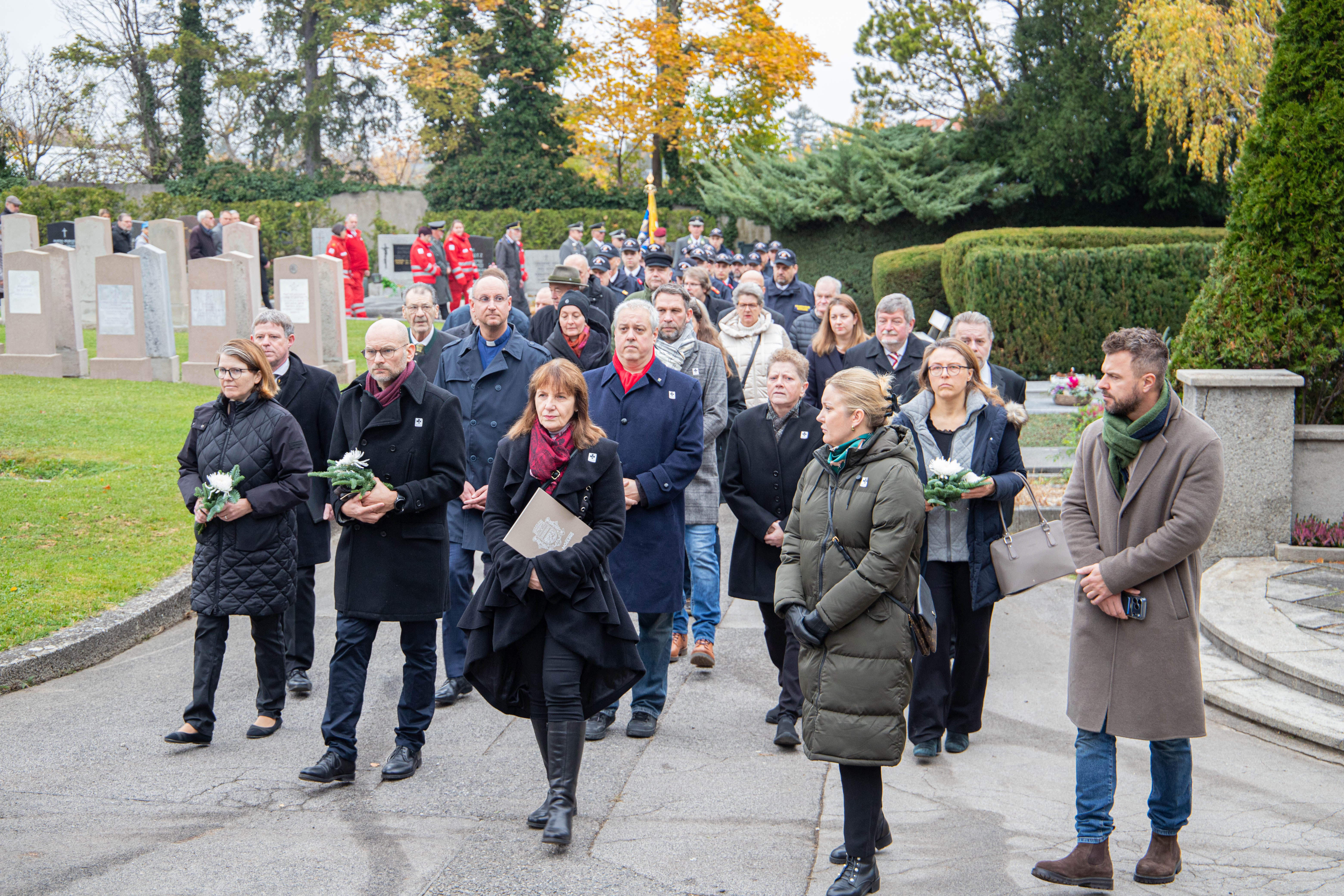 Zum jährlichen Friedhofsgang trafen sich auch dieses Jahr Abordnungen des Mödlinger Stadt- und Gemeinderates, des Roten Kreuzes, des Kameradschaftsbundes und der Feuerwehr am Mödlinger Friedhof.