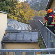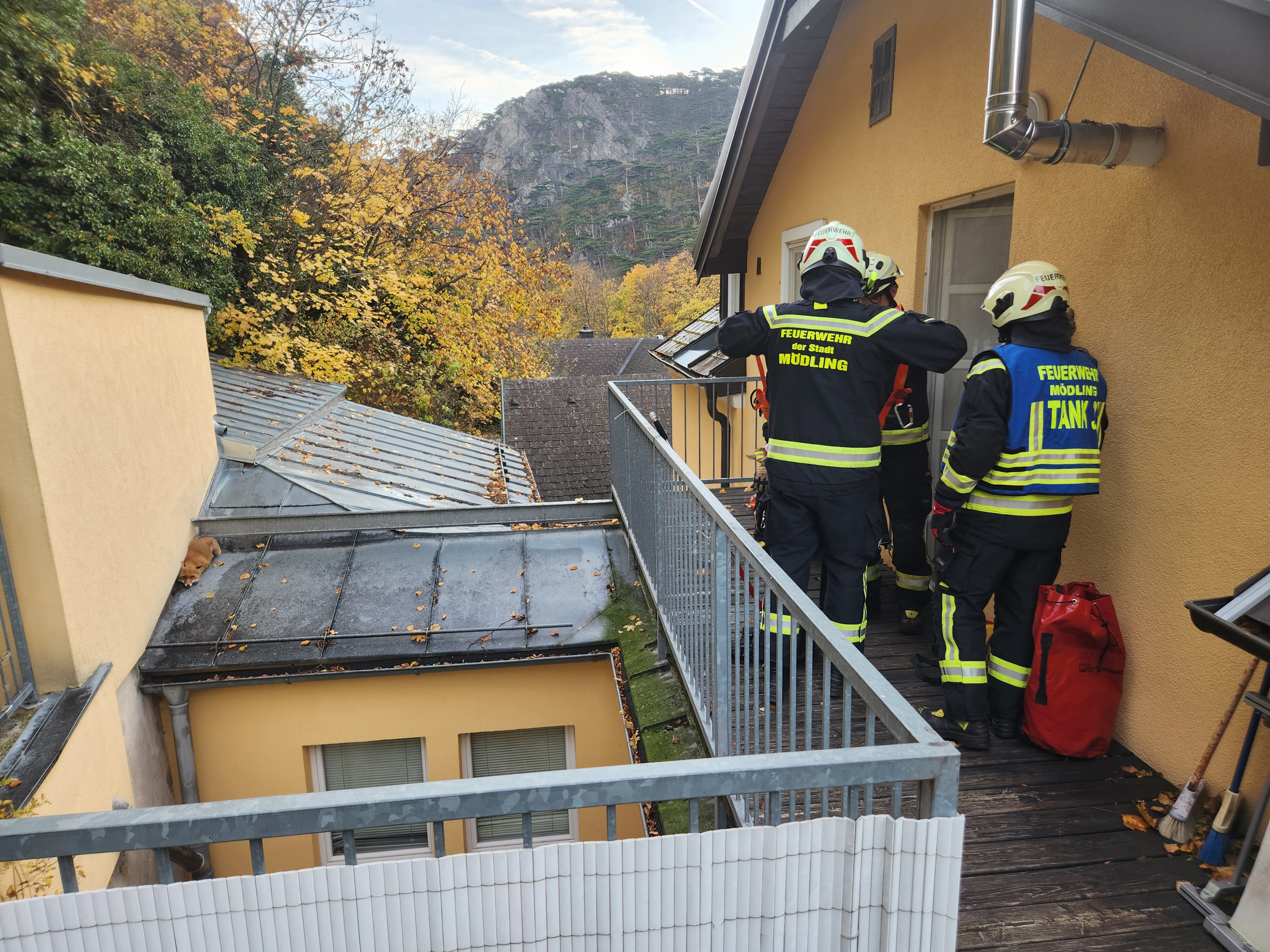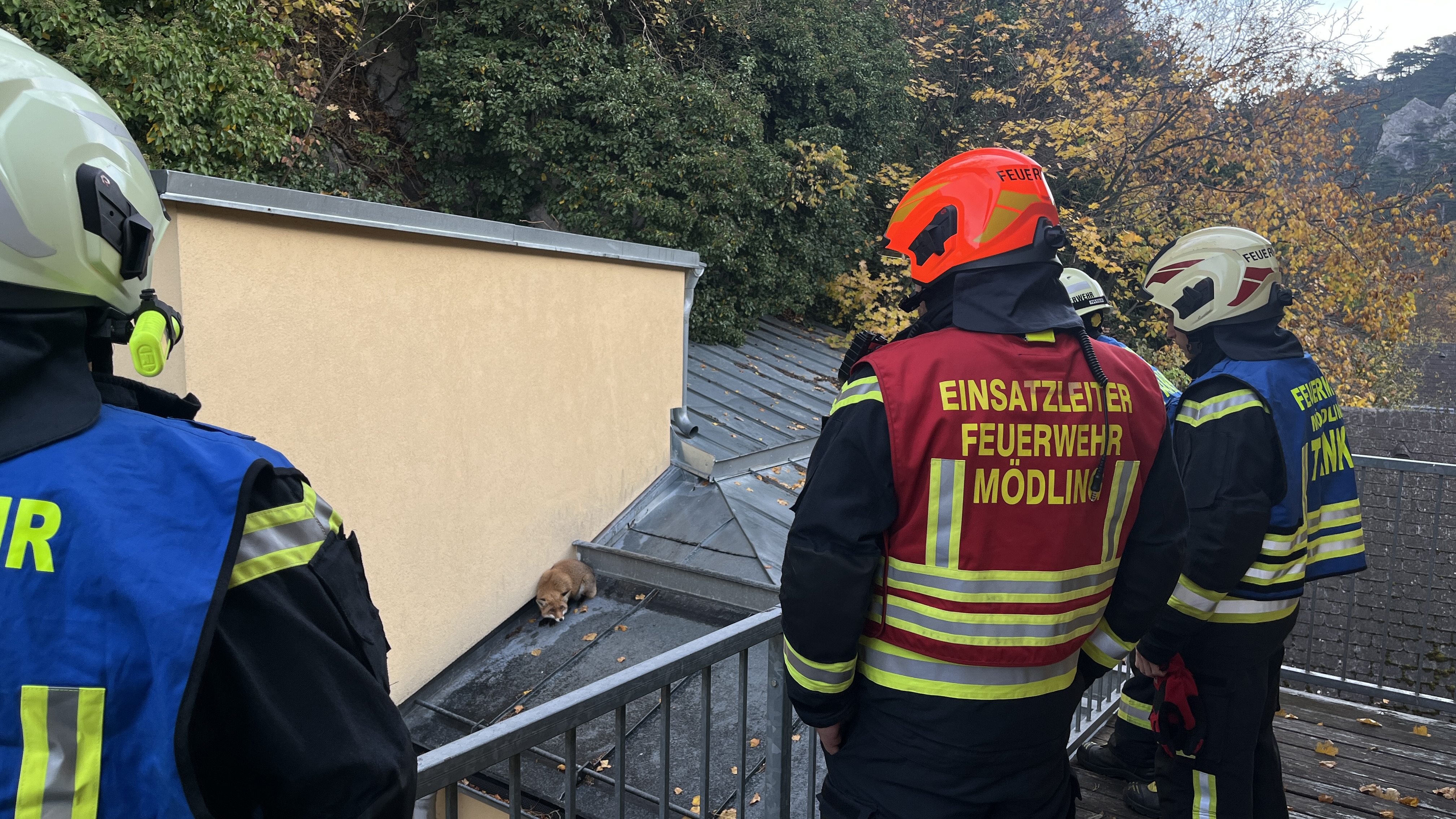 Am 2. November startete der Sonntag für die Mitglieder der Feuerwehr Mödling bereits um 7 Uhr. Einer Hausbewohnerin fiel ein ungewöhnlicher Gast auf dem Dach ihres Hauses auf. Ein verängstigter Fuchs kam augenscheinlich von alleine nicht mehr hinunter. Ein Feuerwehrmitglied rüstete sich mit einem Sicherungsgurt, einer Fangschlinge und Tierrettungshandschuhen aus und stieg auf das Dach. Kurz bevor er das Tier erreichte, sprang dieses auf einmal auf und wagte einen riskanten Sprung in Richtung einer Mauer. Gekonnt landete das Wildtier auf der Mauer, zwängte sich durch den Zaun und lief zurück in den angrenzenden Wald. Für die Feuerwehr war kein weiterer Einsatz erforderlich.
