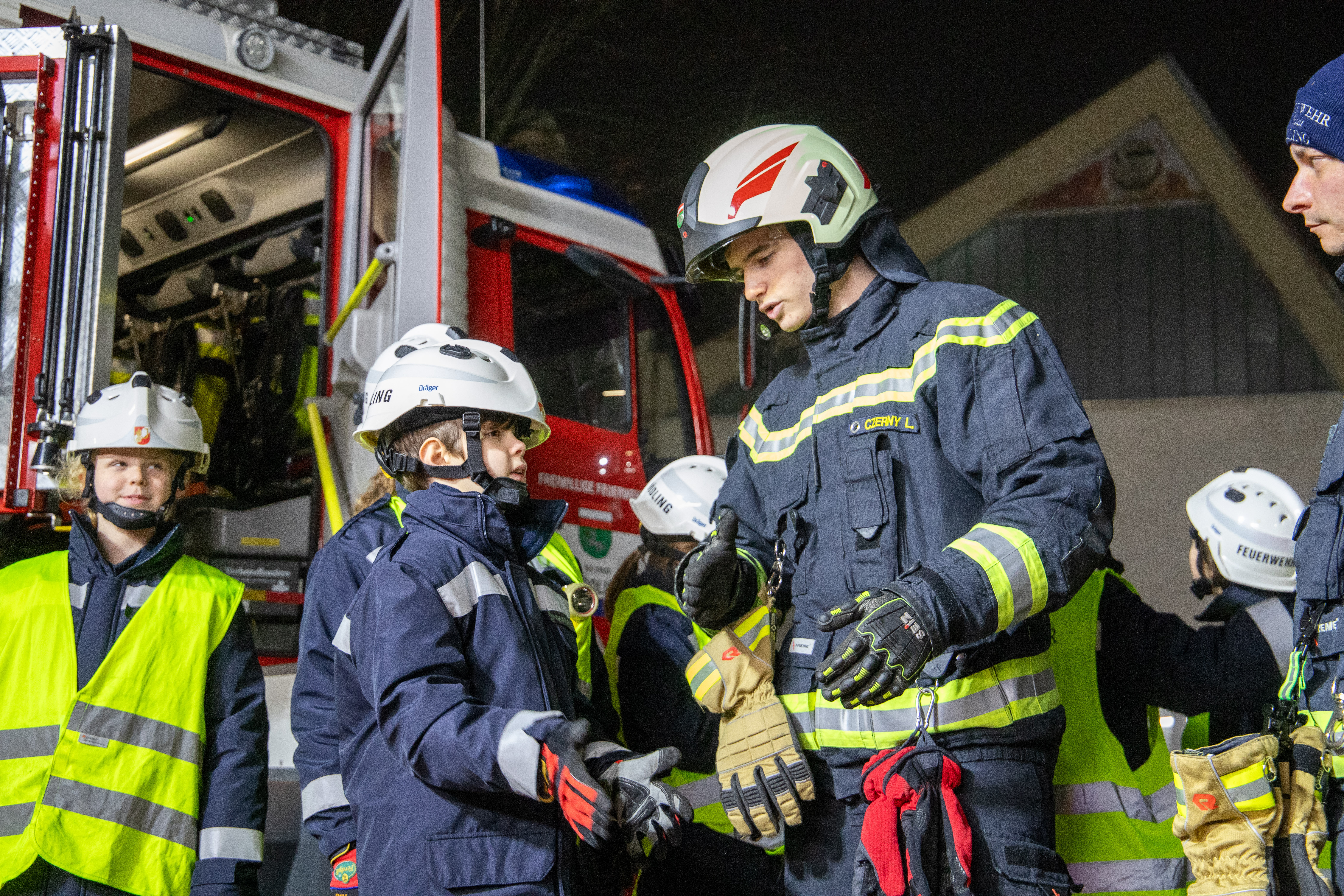Auch der Aufbau einer Löschleitung zur Herstellung eines geeigneten Brandschutzes stand am Programm. Nach dem Durchwechseln der Gruppen und Positionen sowie der Zuteilung zu den Fahrzeugen wurden alle verwendeten Geräte wieder versorgt und die actionreiche Jugendstunde nachbesprochen.