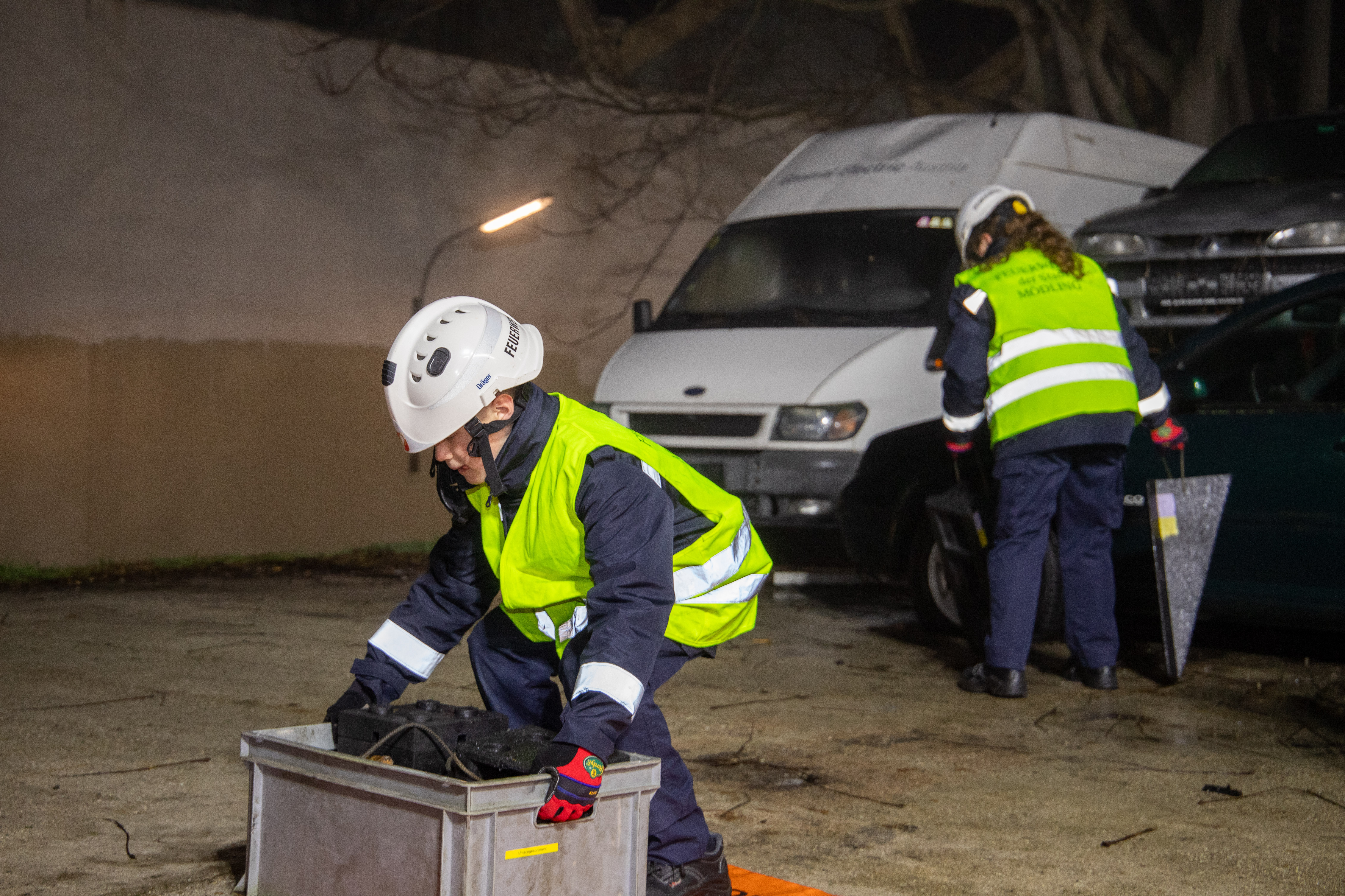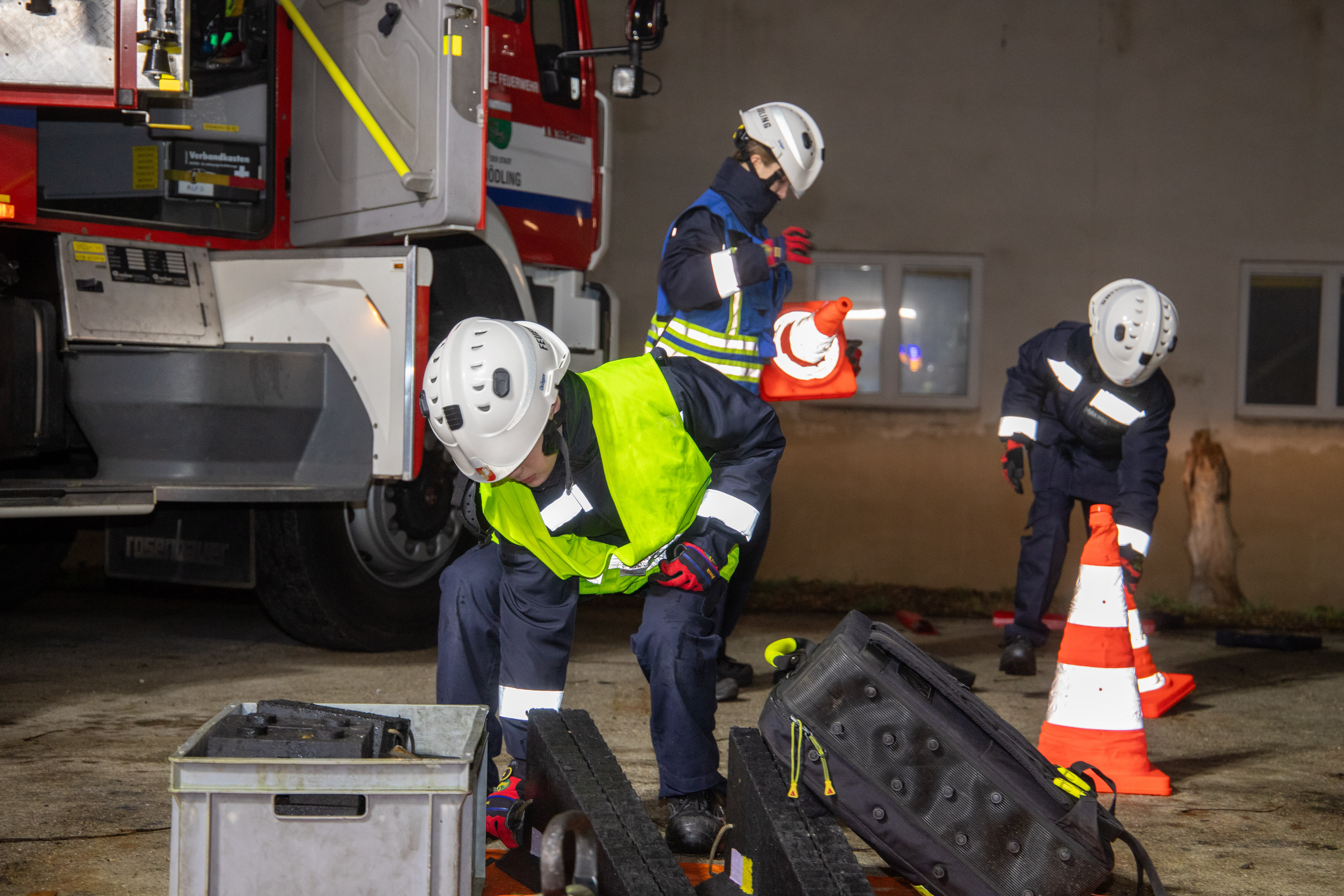 Dabei galt es zunächst einen verunfallten PKW entsprechend zu sichern bzw. dann zu stabilisieren. Parallel dazu wurde ein Geräteablageplatz eingerichtet. Dieser dient zur Ablage von hydraulischen Rettungsgeräten, Handwerkzeug und diversen Gerätschaften, welche zur technischen Menschenrettung aus einem verunfallten Fahrzeug erforderlich sind. Deren Verwendung (insbesondere von hydraulischer Schere als auch Spreizer) und sicherheitstechnische Aspekte wurden ebenso besprochen.