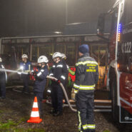 Die Verwendung hydraulischer Rettungsgeräte, Durchführung eines Löschangriffs sowie ein hohes Maß an Teamarbeit waren gefordert.