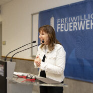Nach einem vom Betreuerteam der Kinderfeuerwehr erstellten Multimediarückblick auf die Highlights des vergangenen Jahres, zeigte die Feuerwehrjugend im Zuge einer Schauübung ihre Fähigkeiten. Dabei musste eine Person mit dem Einsatz hydraulischer Rettungsgeräte aus einem Unfallfahrzeug gerettet und ein fiktiver PKW Brand bekämpft werden. Alle Zuschauer zeigten sich sichtlich begeistert von den Leistungen der Jugendlichen. Auch unsere Bürgermeisterin Silvia Drechsler überzeugte sich von den Leistungen des Feuerwehrnachwuchses und bedankte sich in ihrer anschließenden Rede nicht nur für das Engagement des Nachwuchses , sondern auch bei den Betreuerteams für ihren unermüdlichen Einsatz im Bereich der Jugendarbeit.