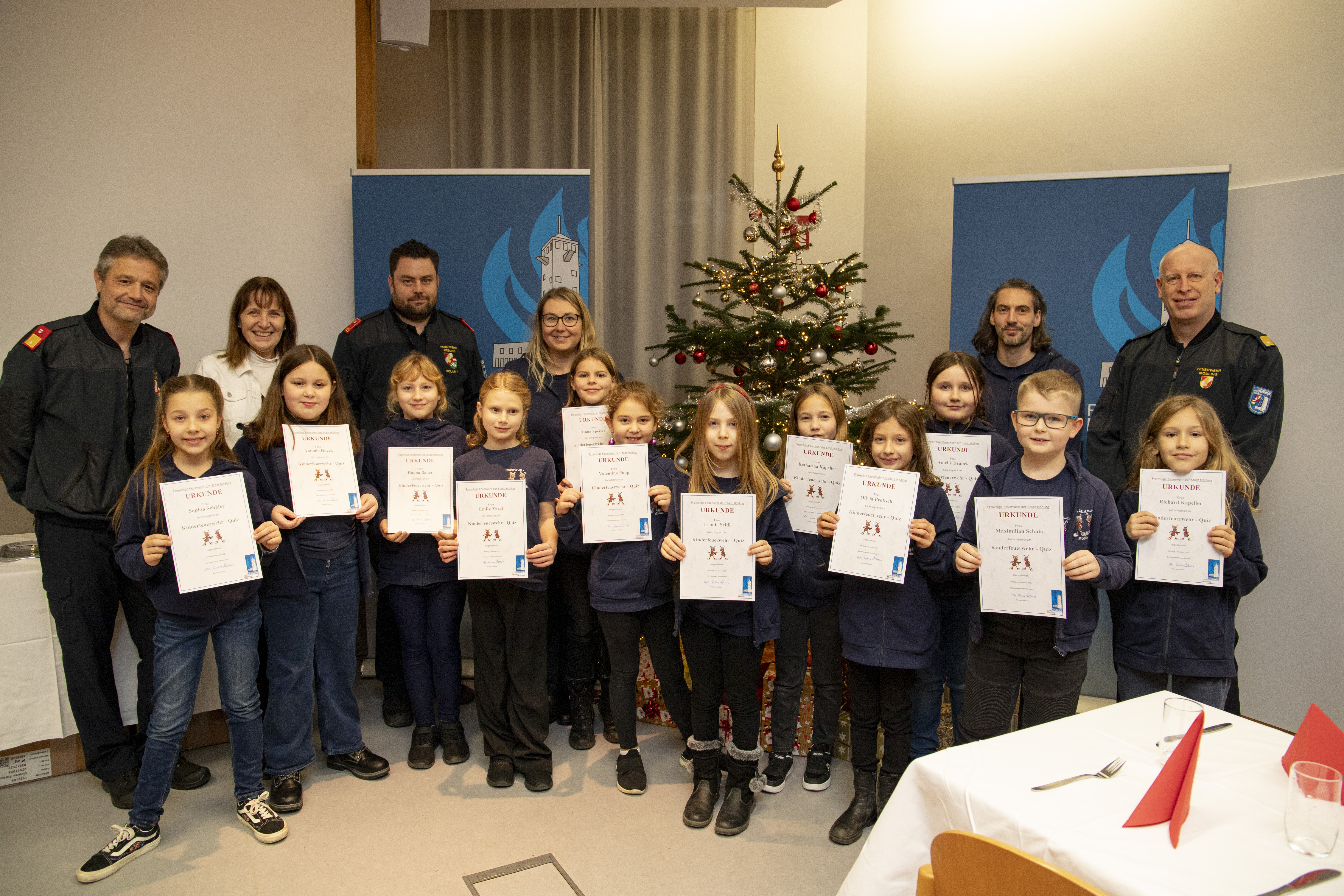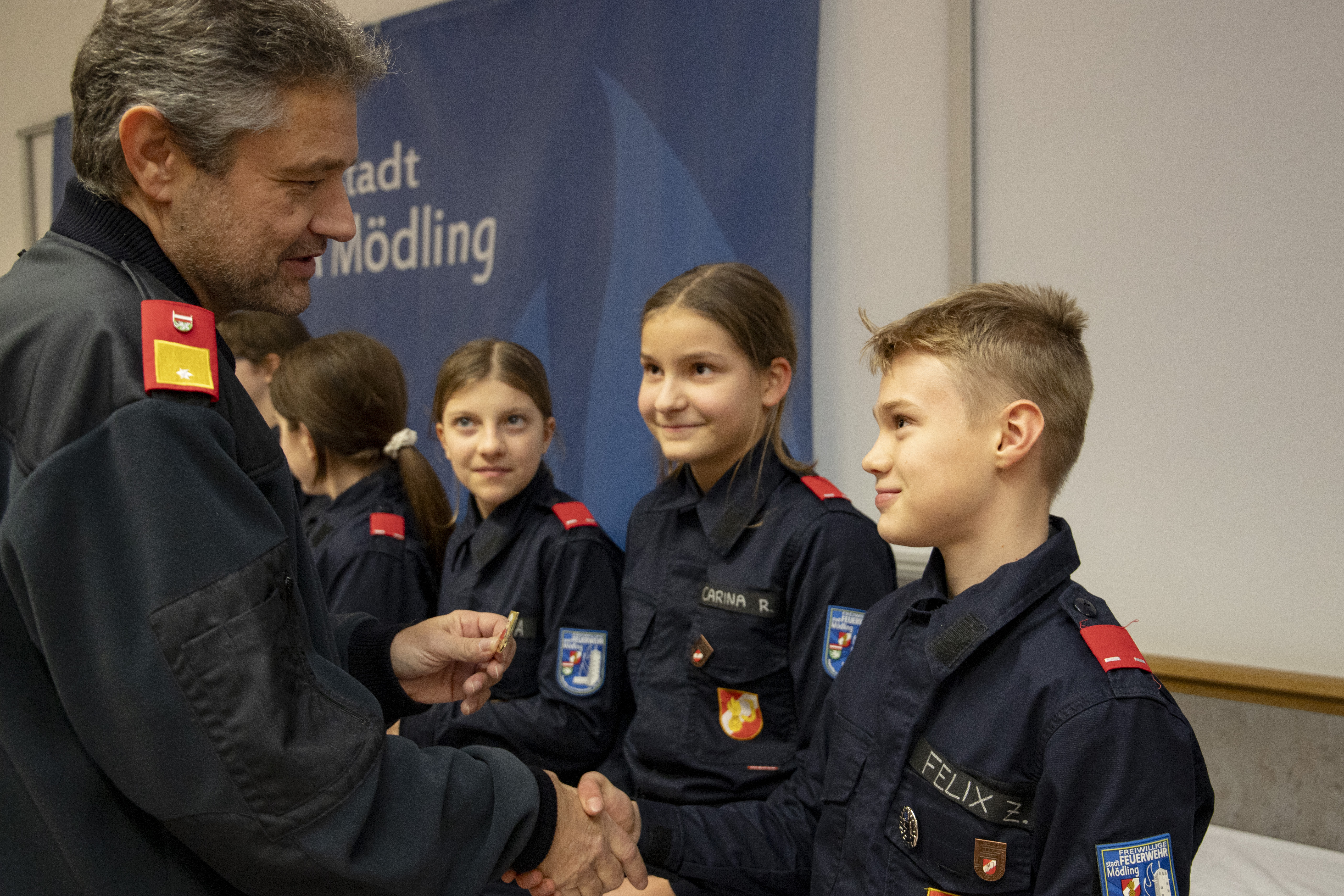 In weiterer Folge wurde Mitgliedern der Kinderfeuerwehr Urkunden für die Absolvierung eines Kinderfeuerwehr-Quiz verliehen. Anschließend wurden die beiden Kameraden Moritz Prinz und Maximilian Tadic zur Feuerwehrjugend angelobt. Es folgte die Beförderung aufgrund der absolvierten Erprobungen (eine Art Wissensüberprüfung die jedes Jahr absolviert werden kann, um eine Beförderung zu erreichen).