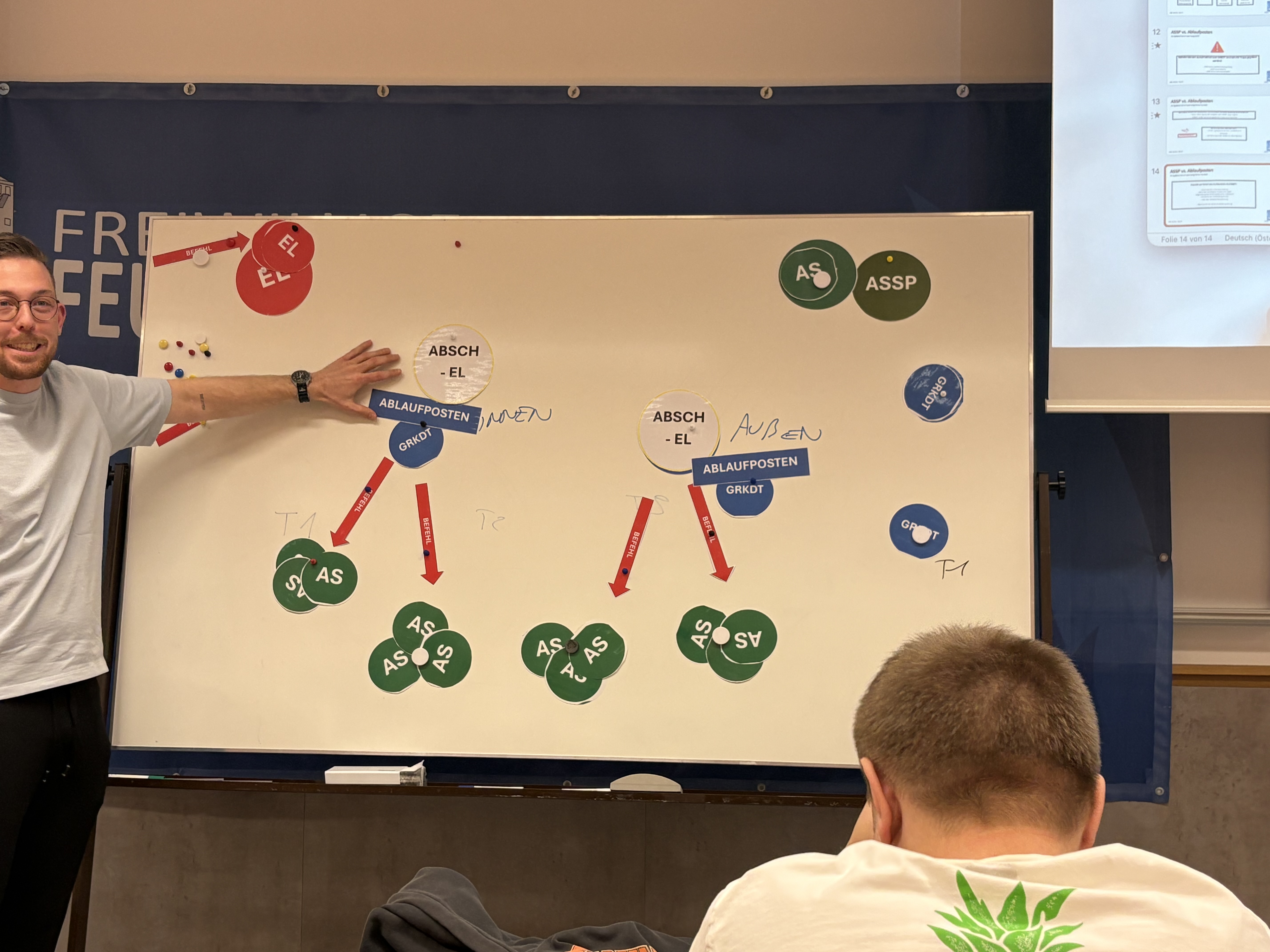Im ersten Teil der Schulung wurden Neuerungen in der Atemschutzausbildung vorgestellt. Dabei wurde insbesondere auf den Atemschutznotfall eingegangen. Im zweiten Teil der Schulung konnte durch Ausbildner BM Stefan Wolf der einsatztaktische Aufbau eines größeren Atemschutzeinsatzes erklärt werden. Die Aufgaben von Ablaufposten, Abschnittseinsatzleiter, Atemschutzsammelplatz usw. wurden dabei im Detail besprochen. Im letzten Teil der Schulung wurde durch den Sachbearbeiter Atemschutz LM Patrick Blüml die Kommunikation im Atemschutzeinsatz wiederholt.