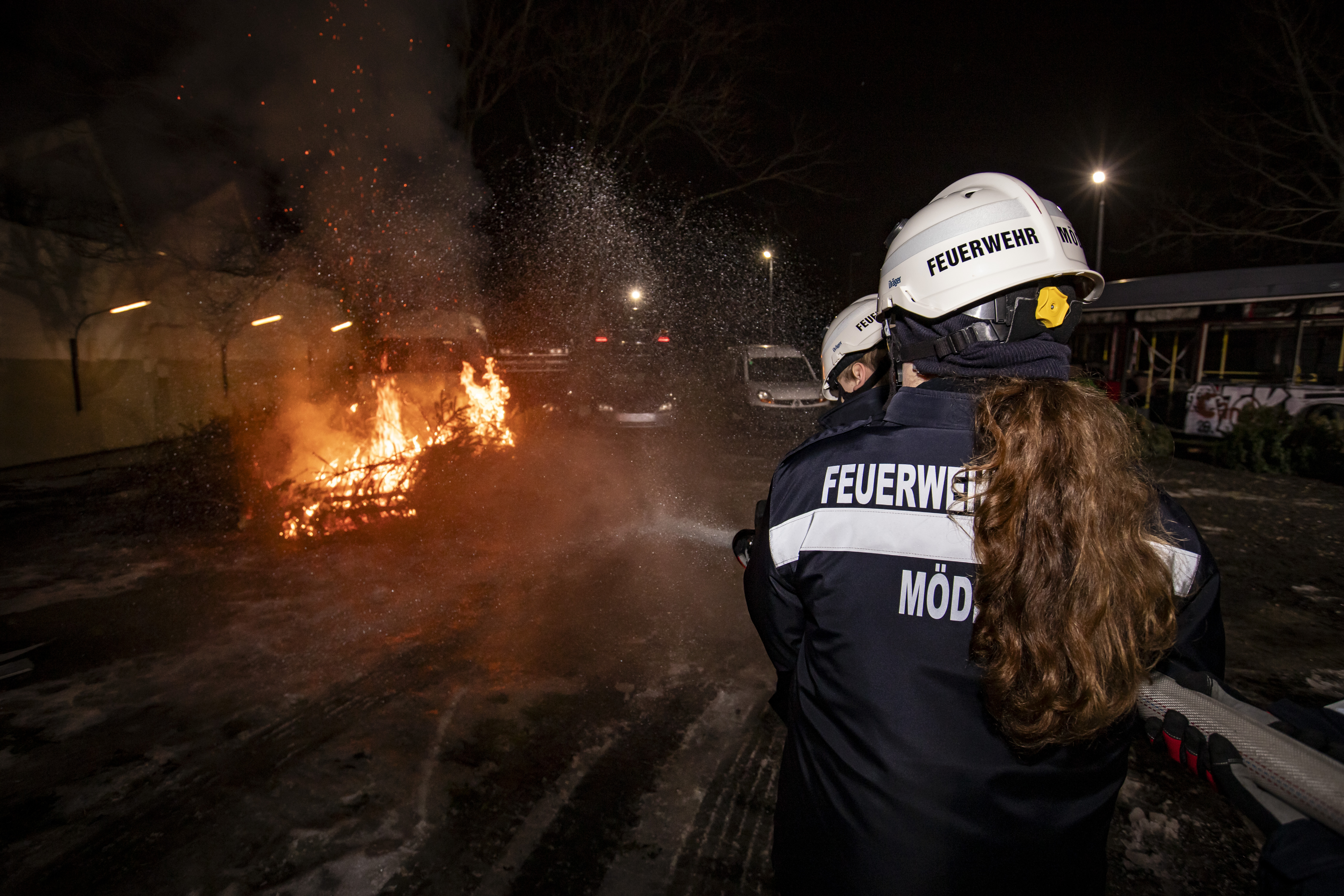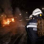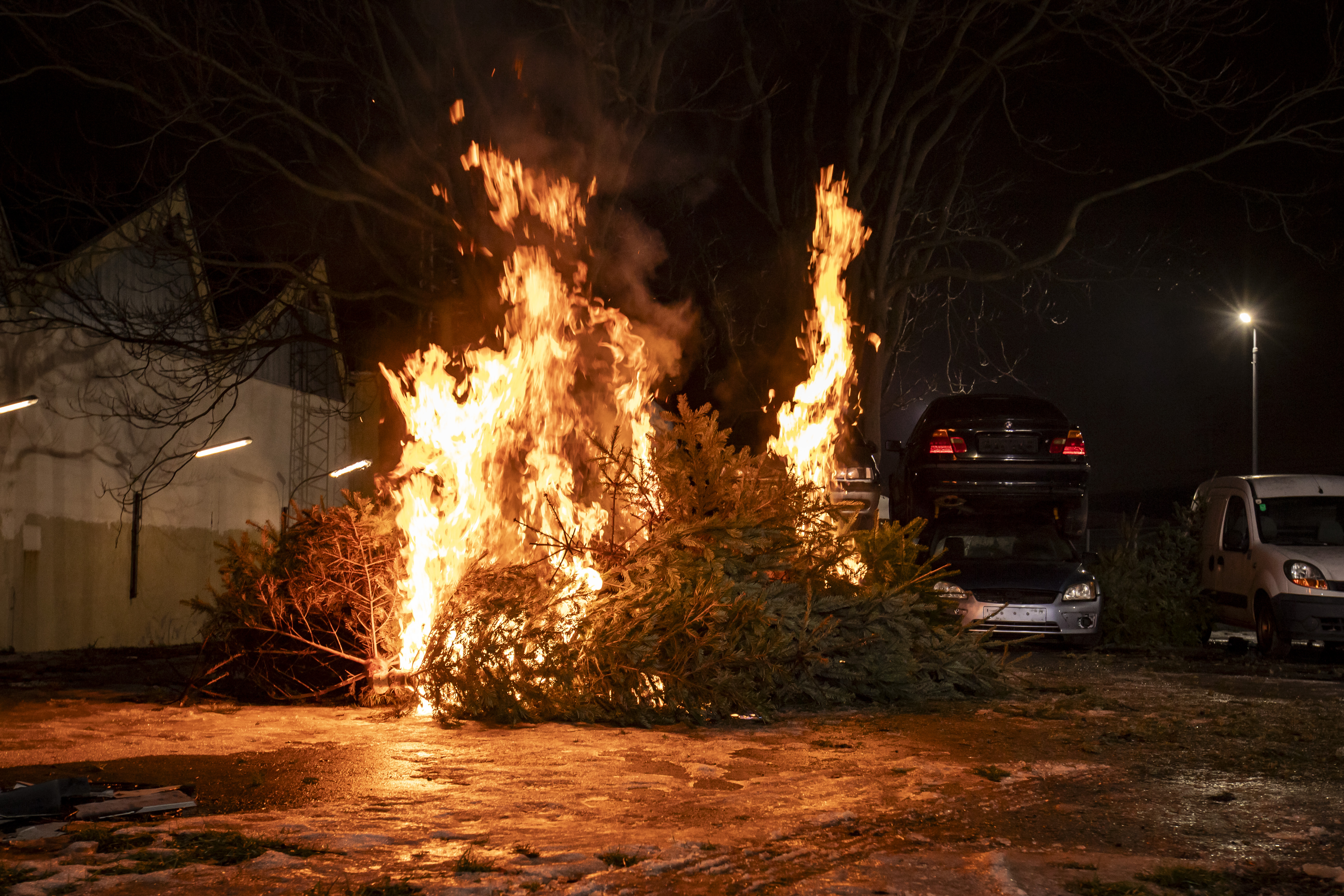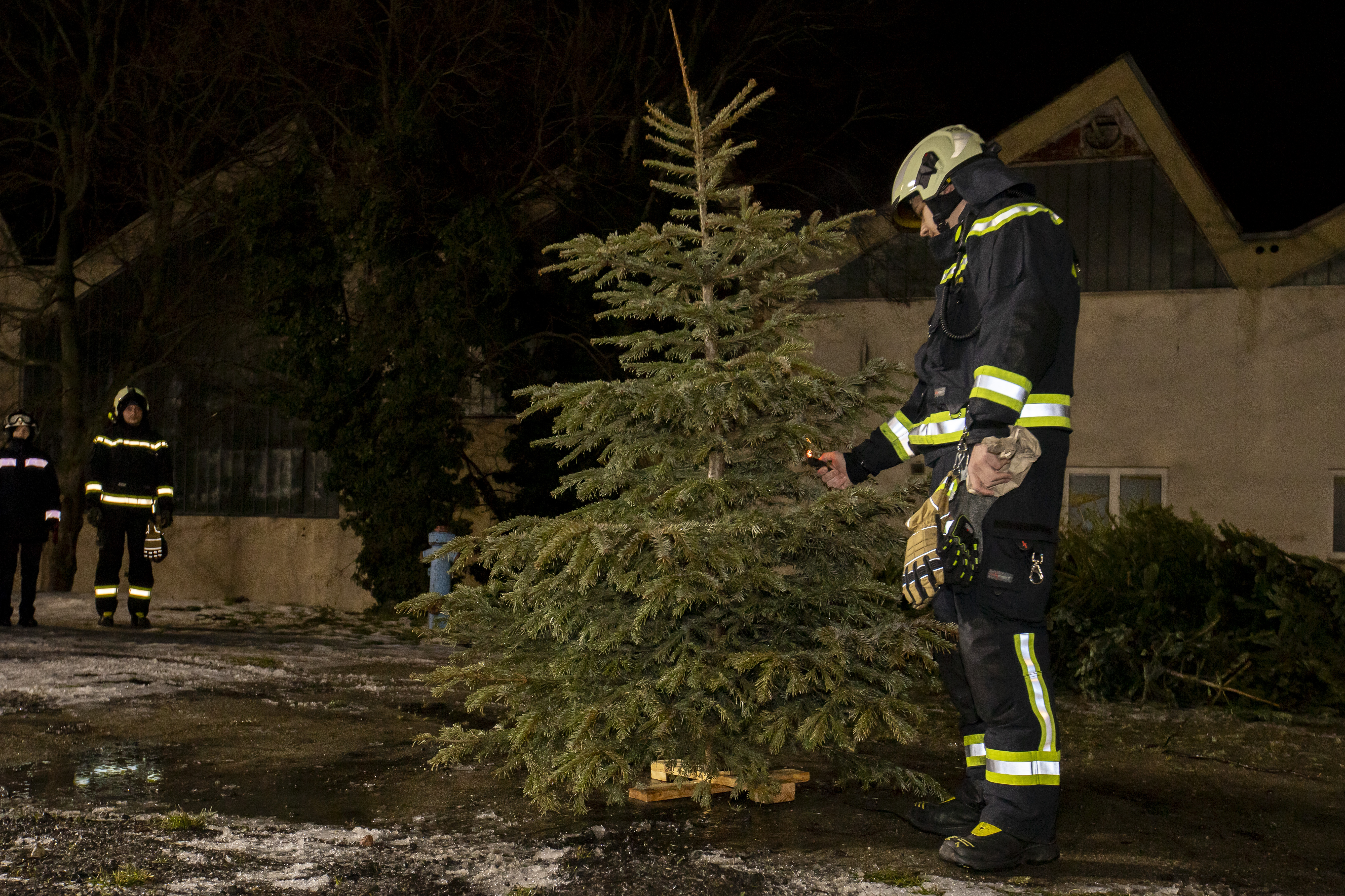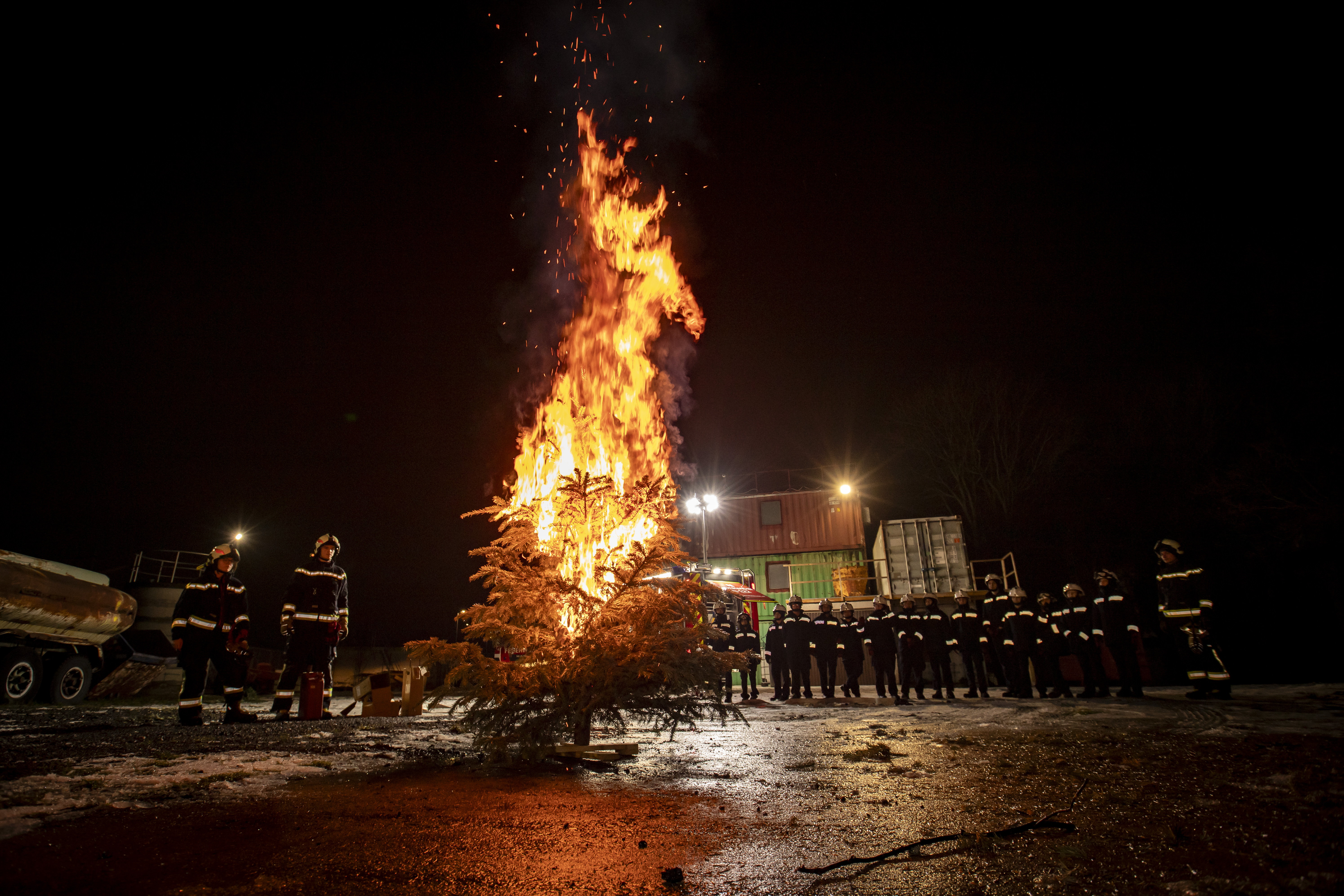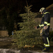 Am 28. Jänner stand eine praktische Übung zum Thema Brandbekämpfung am Programm. Als Brennmaterial dienten die entsorgten Christbäume, der Mödlingerinnen und Mödlinger. Bevor es jedoch ans Löschen ging, demonstrierten die Ausbilder, wie schnell ein Baum Feuer fängt. Dafür wurde ein brennendes Stück Papier im Geäst platziert. Es dauerte keine 10 Sekunden, bis der Christbaum lichterloh brannte.