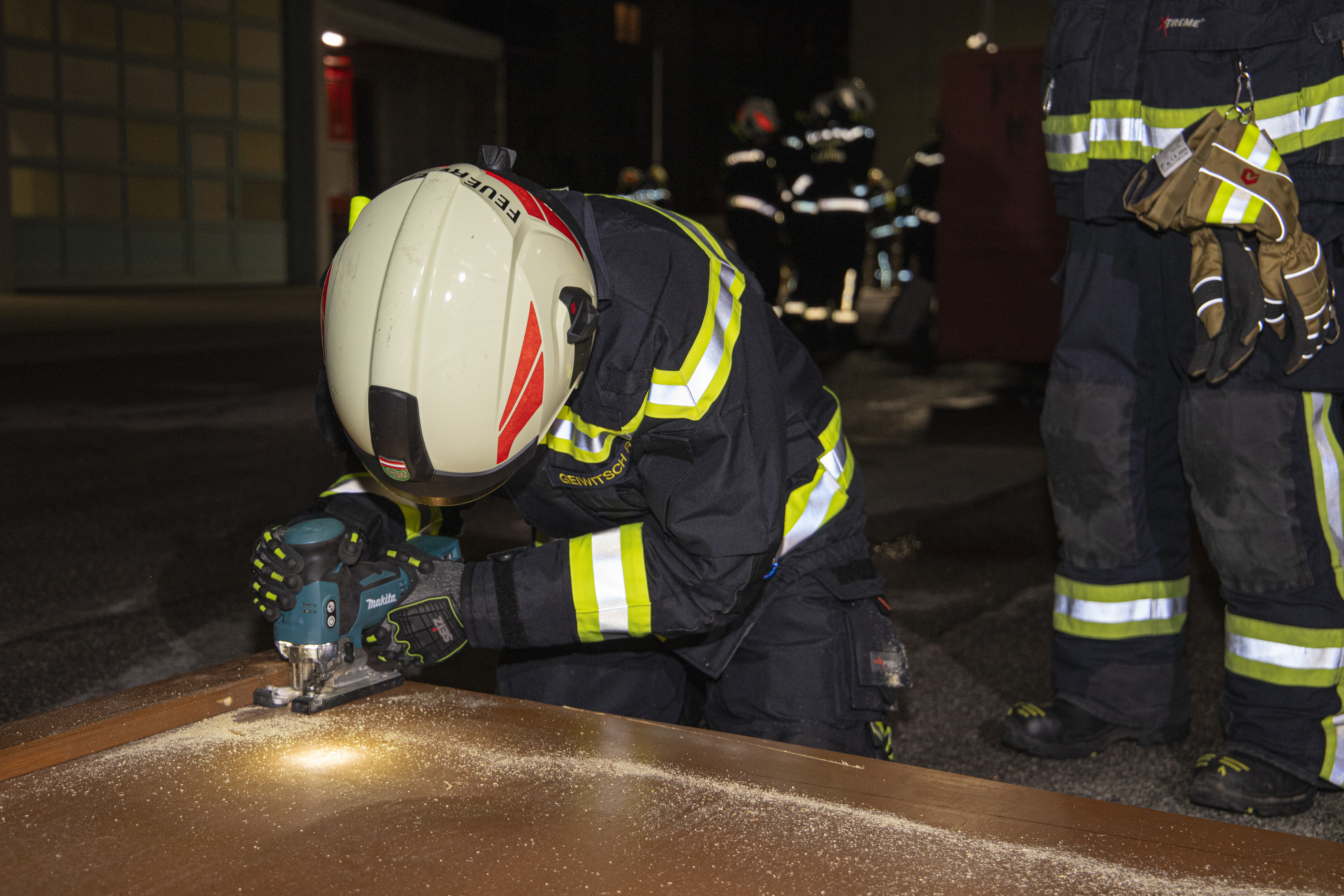 Aufgeteilt in sechs Kleingruppen wurden Schneid- und Trenngeräte sowie Bohrmaschinen, Bohrhammer und Akkuschrauber umfassend beübt. Neben theoretischen Erklärungen wurden alle Geräte auch praktisch angewendet. Während unsere älteren Kameraden bereits Erlerntes festigen konnten, war es für unsere jüngeren Kameraden oftmals die erste Anwendung der Geräte.
