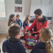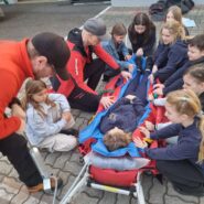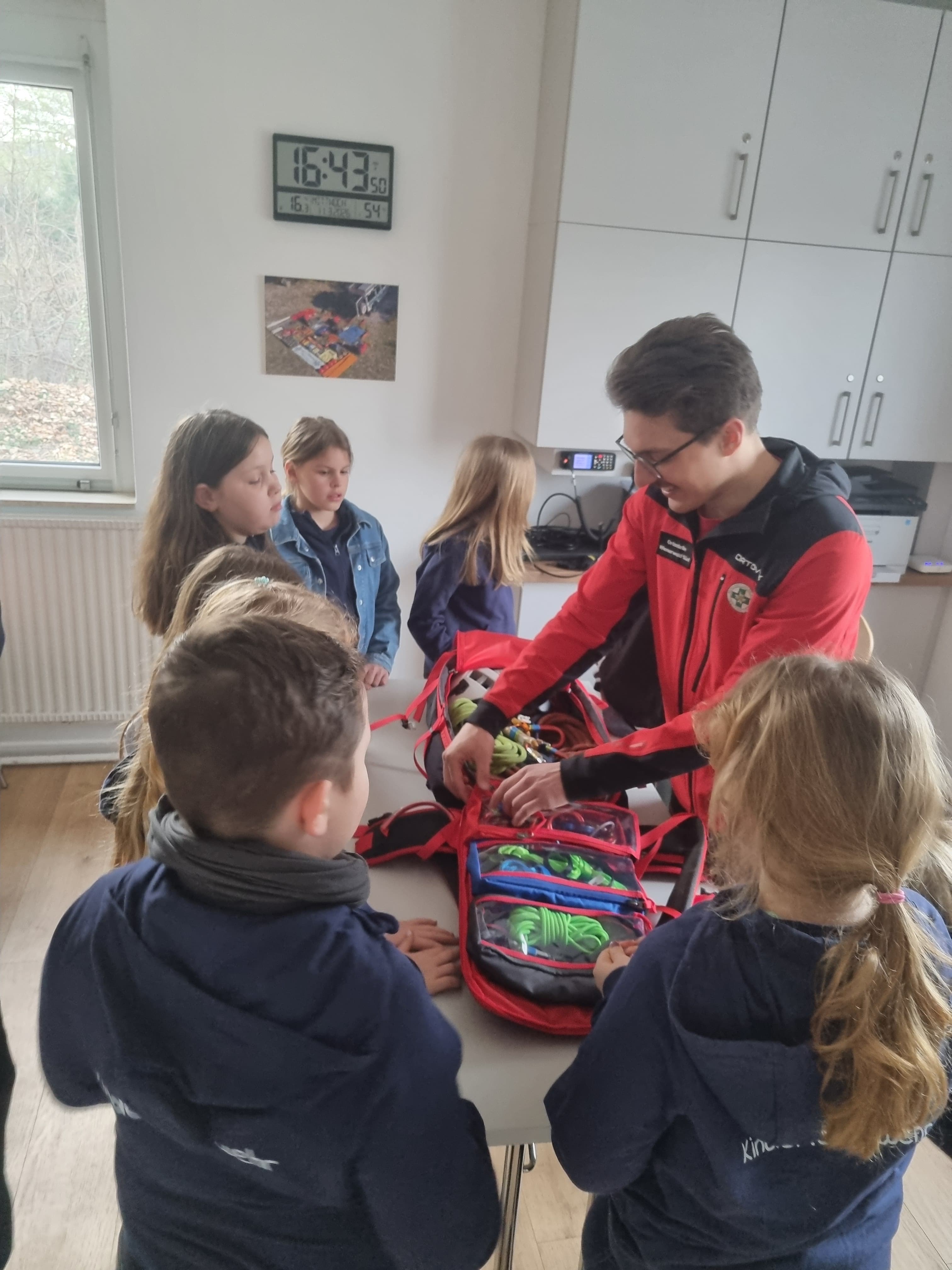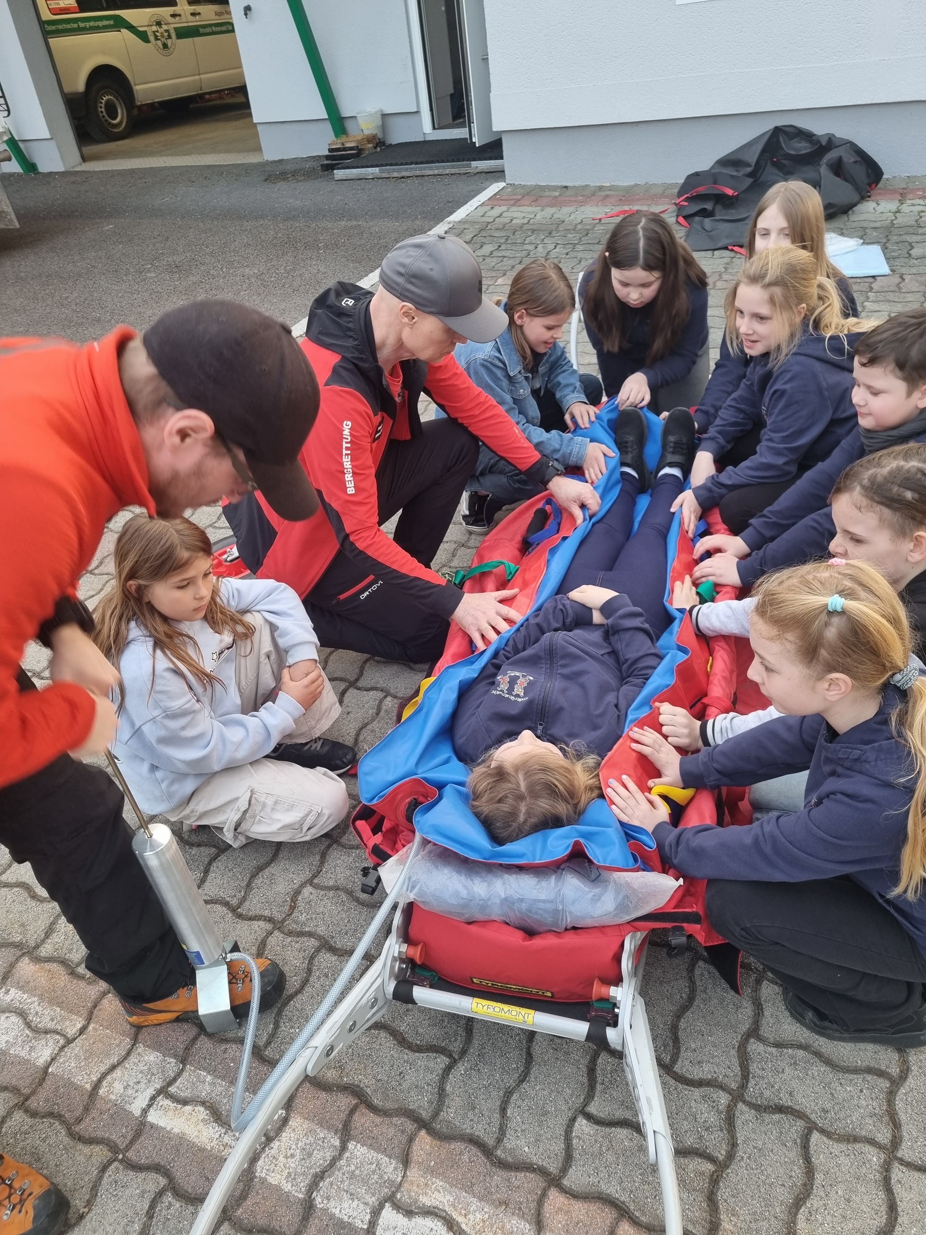 Insgesamt 17 Kinder durften nach einer kurzen Präsentation über die Organisation, die Vorstellung deren Alarmierung/Einsatzarten und Ihren Aufgaben, die Autos und das Equipment besichtigen. Das Highlight waren die Geräte und die Ausrüstungen der Bergrettung, diese durften fallweise sogar getestet werden. Zum Abschluss gab es für jedes Kind noch ein Geschenk, bestehend aus einer Rettungsdecke, die sie beim Wandern immer im Rucksack bei sich haben sollten, und einem Papier-Bastelauto.