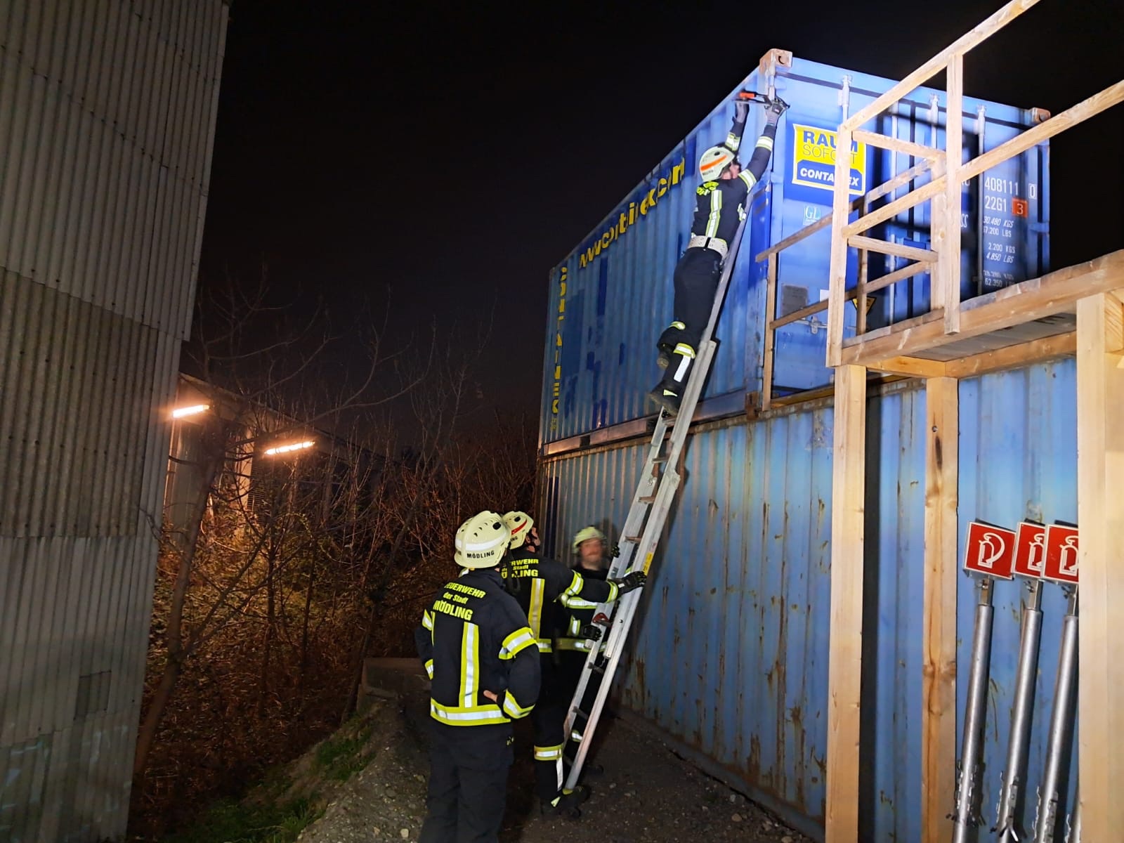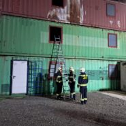 Dazu wurden unsere Steckleitern und die zweiteilige Schiebleiter an verschiedenen Stationen beübt.