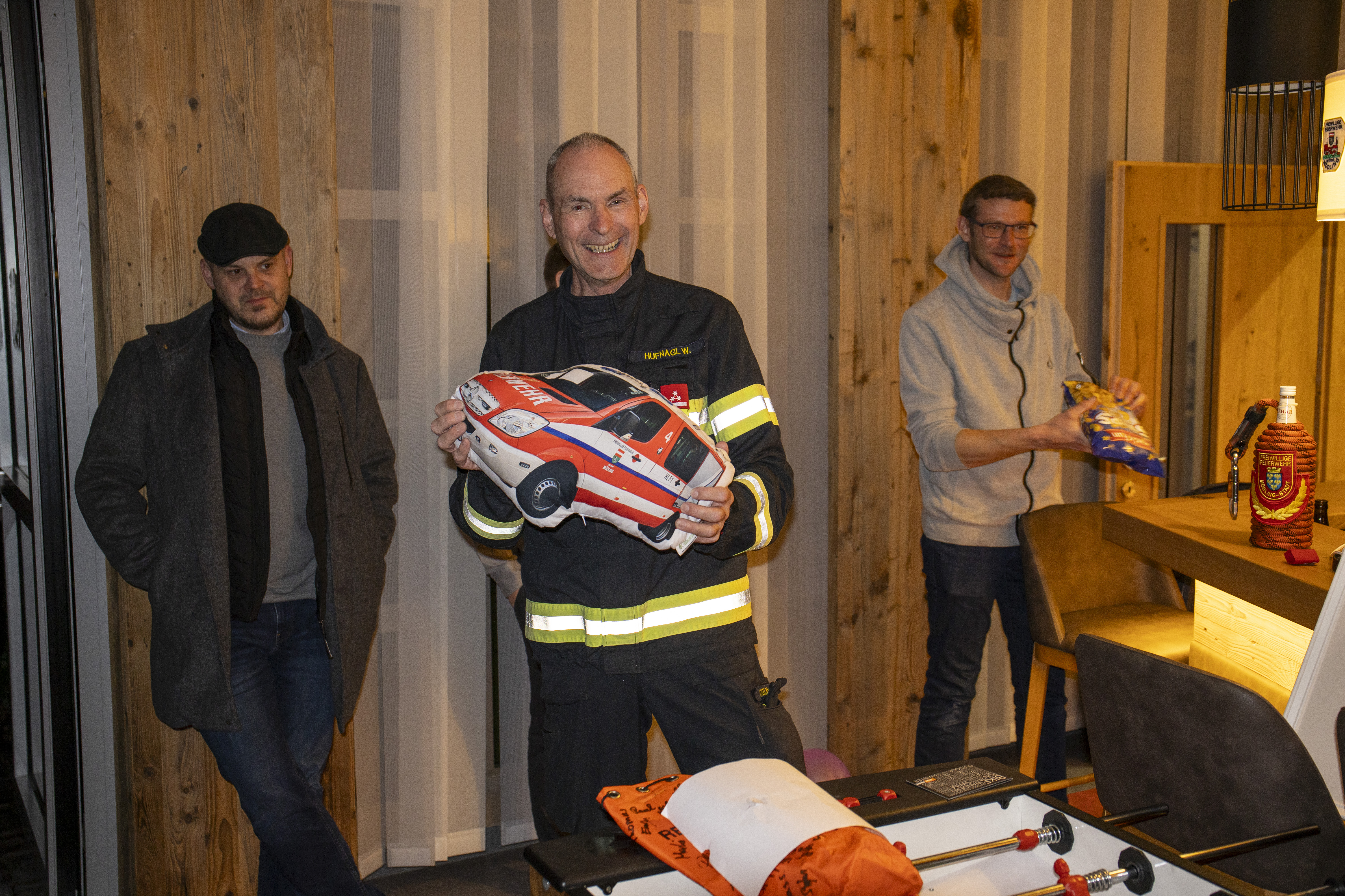 Anlässlich des 65. Geburtstages und der damit einhergehenden Überstellung in die Reserve von HLM Wolfgang Hufnagl überraschten ihn 36 Kameradinnen und Kameraden mit einer Feier und übergaben ihm mehrere Geschenke.